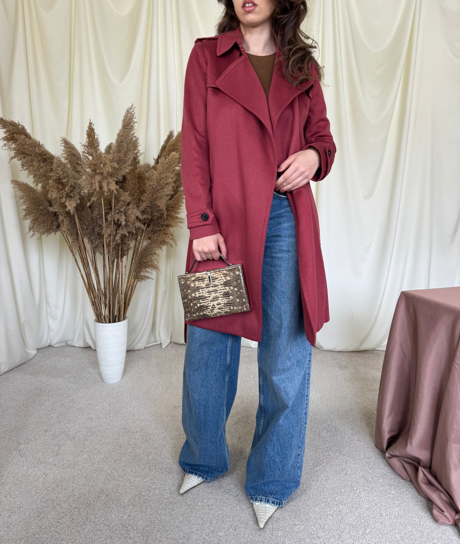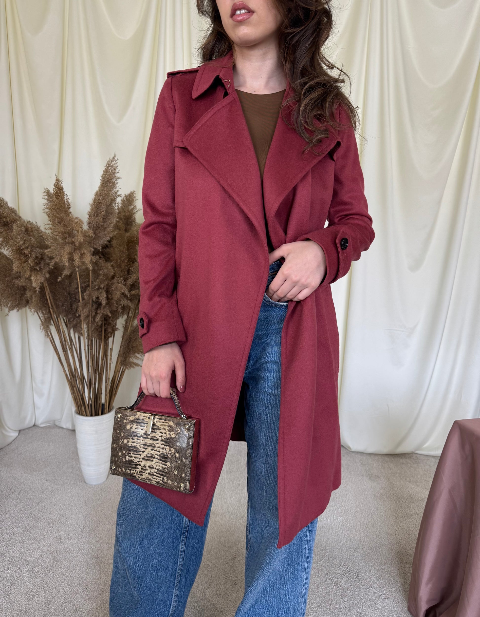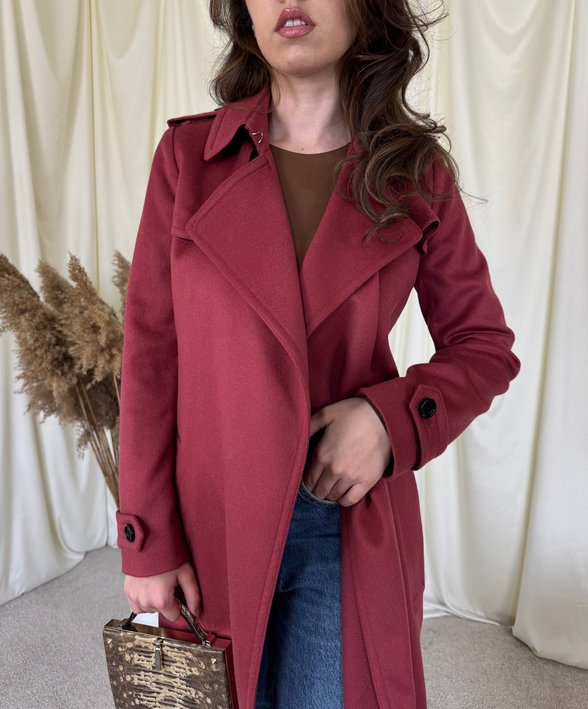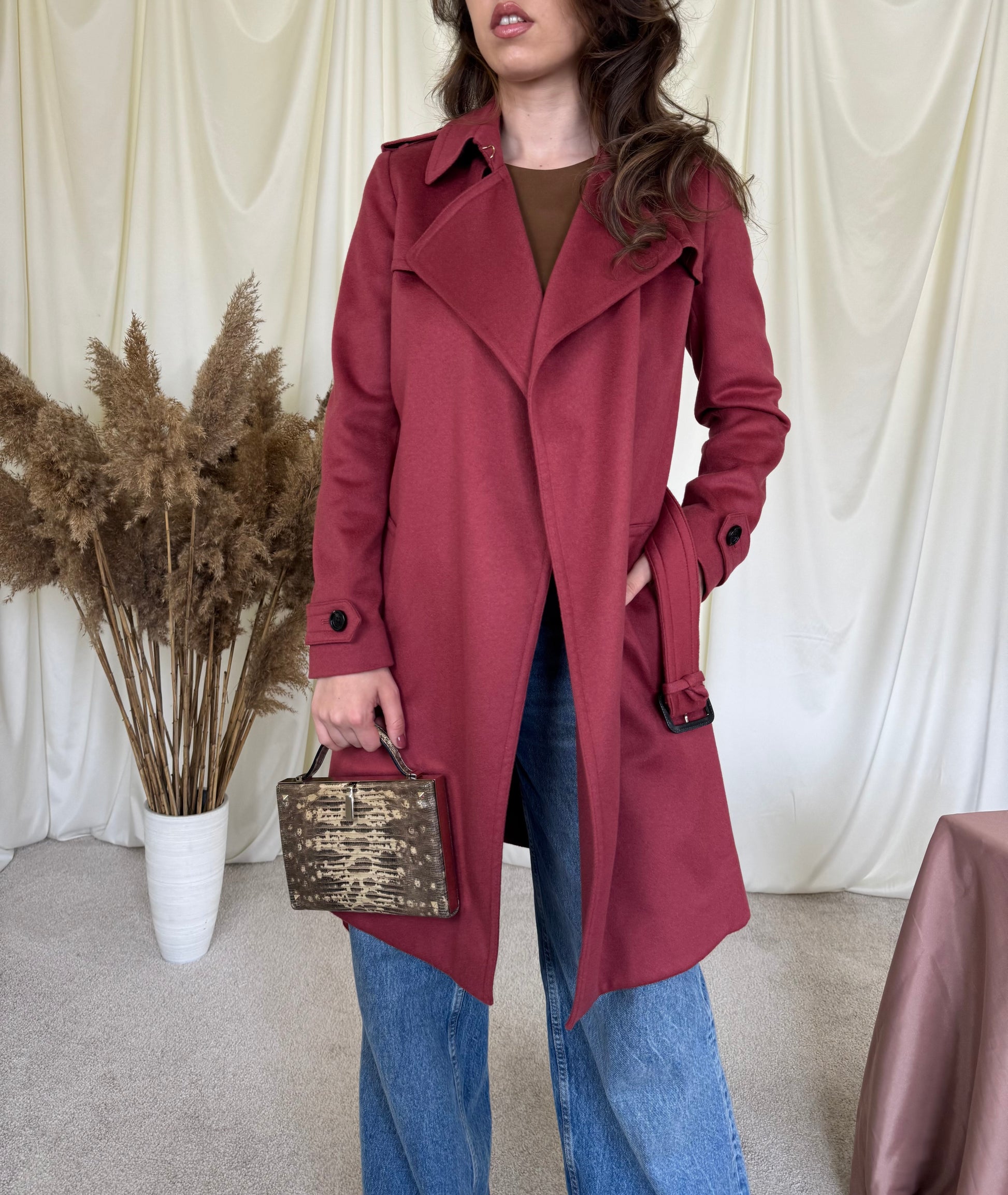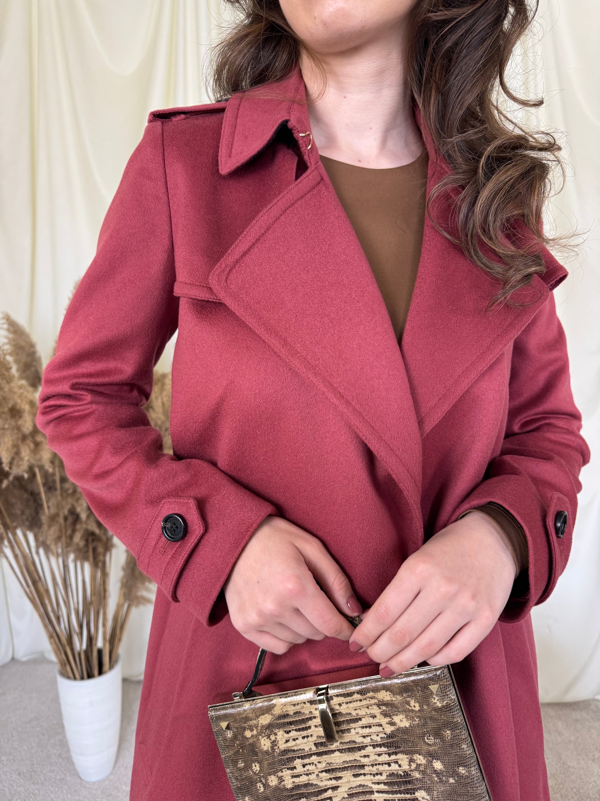 Trench BURBERRY din 100% cașmir cu cordon în talie din piele naturala .