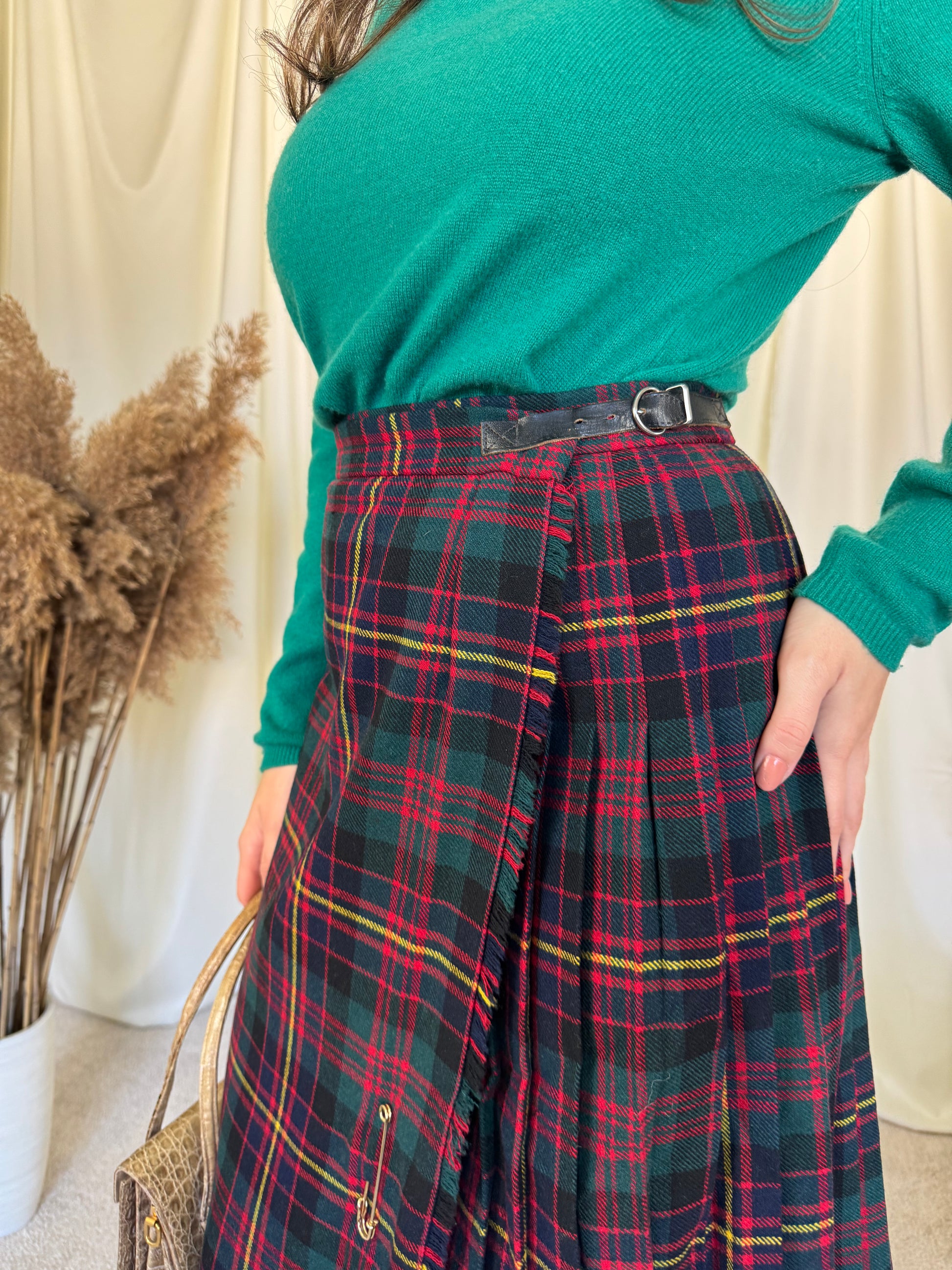 1. Fusta vintage tartan din 100% lână, talie înaltă marcată- se poate ajusta puțin, mărimea xs-s, maxim 65 cm talie