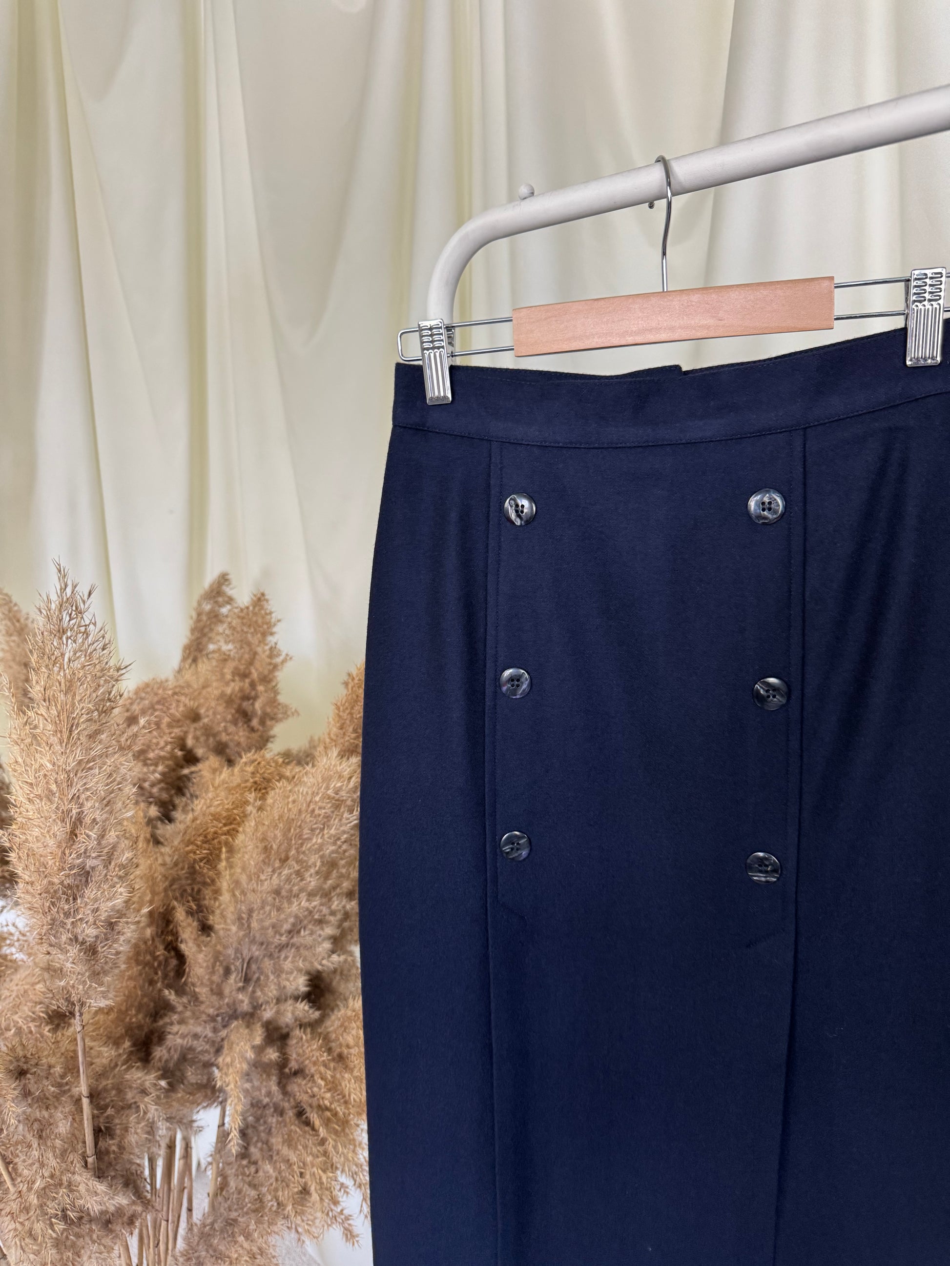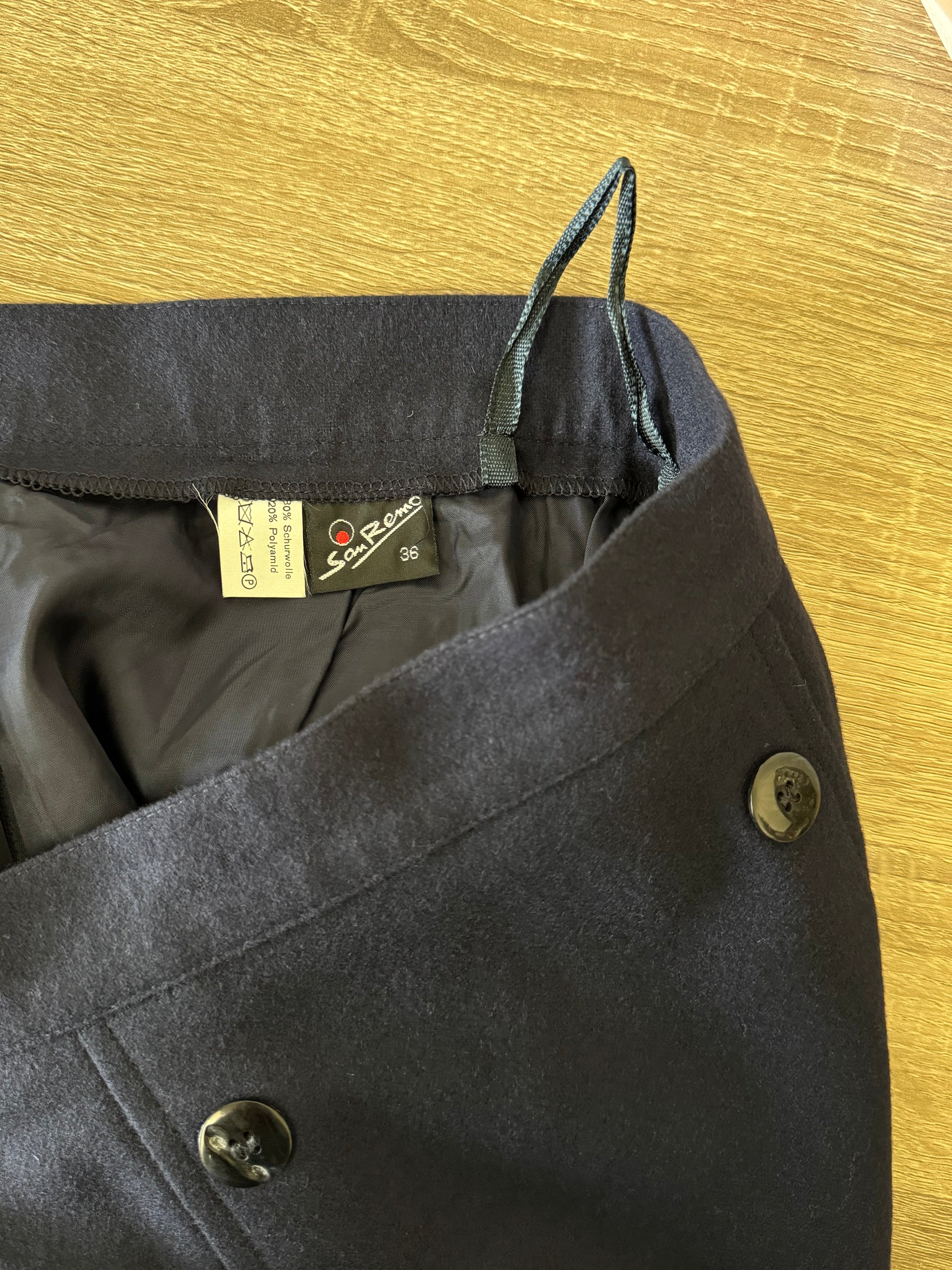 Fustă vintage cu talie înaltă din 80% lână, bleumarin