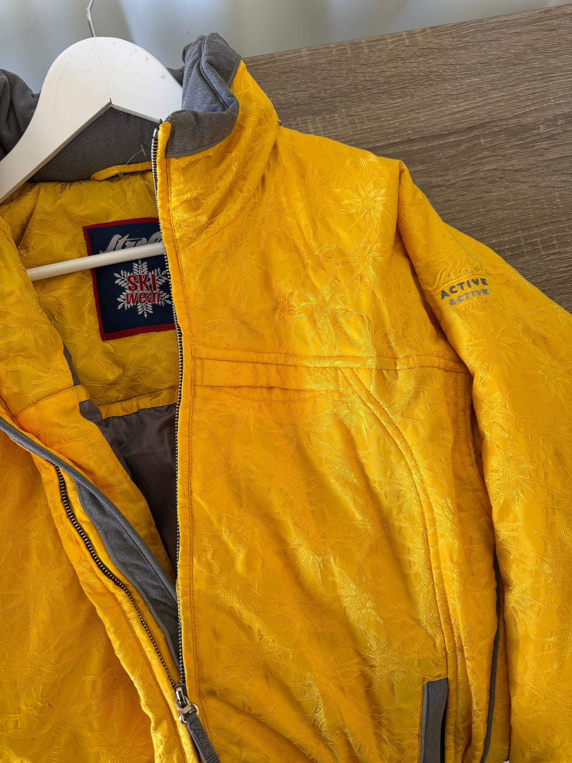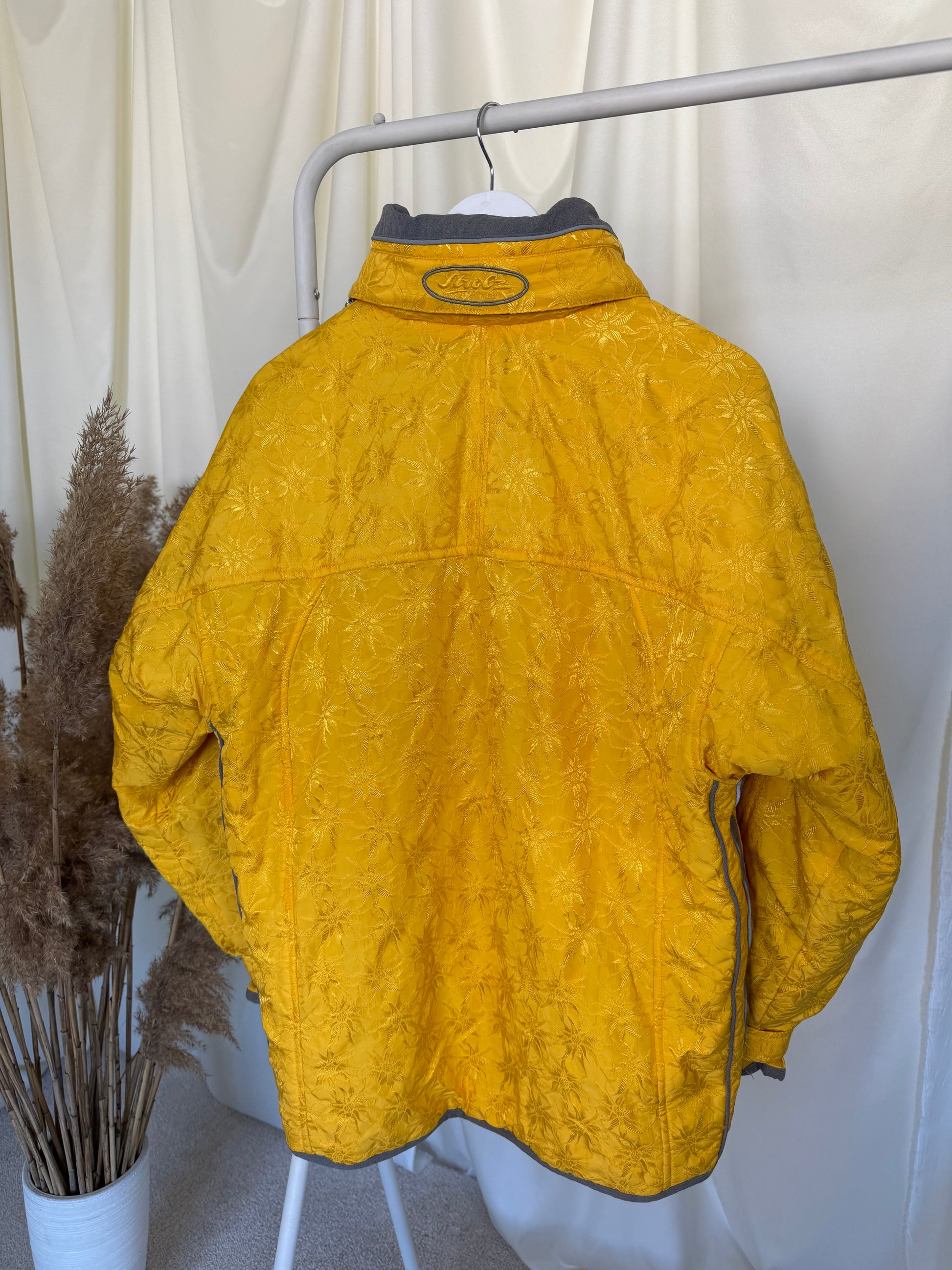 Geaca vintage ski, nuanța superbă de galben cu print floral, mărimea M-L, preț: 280 lei