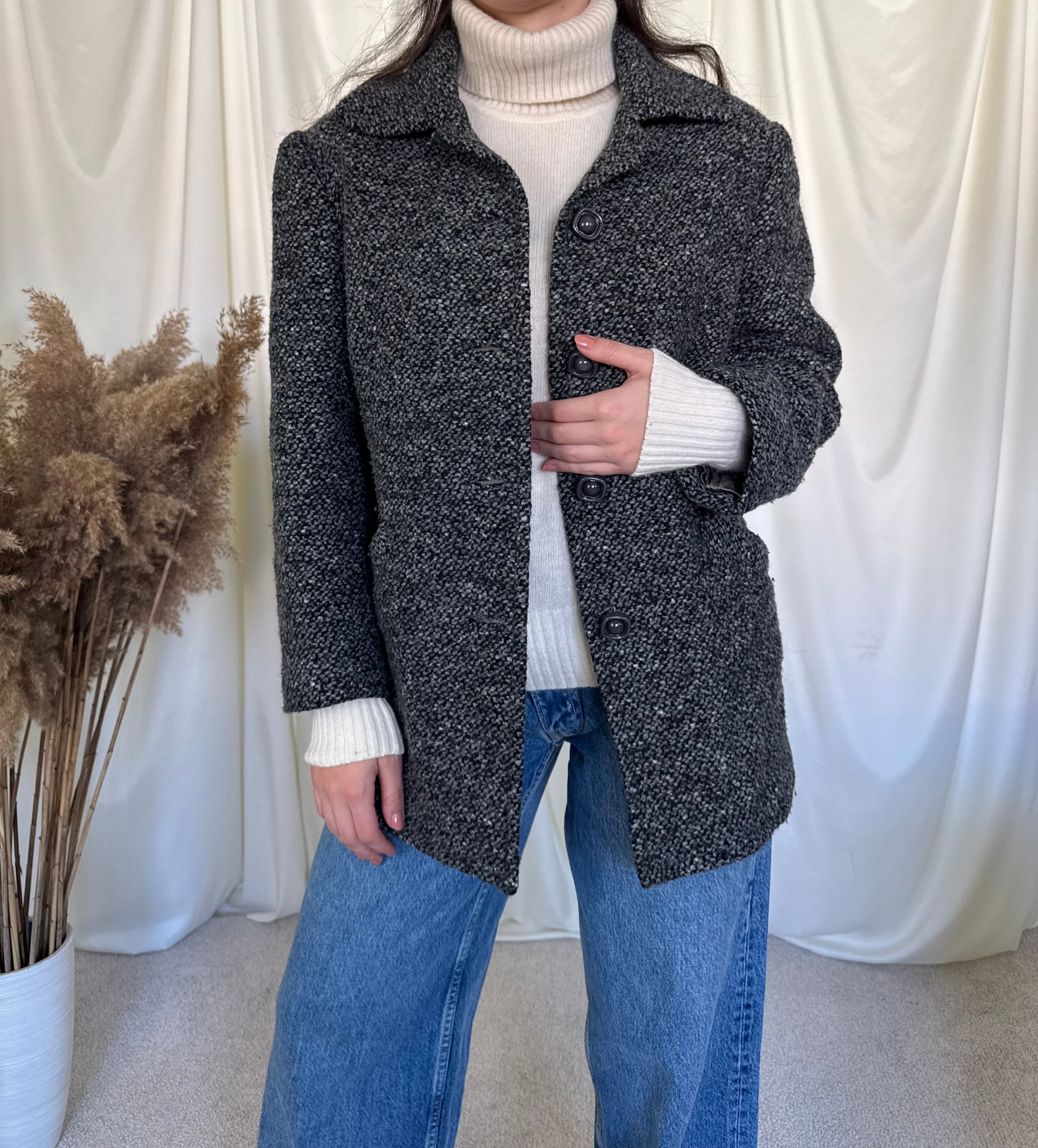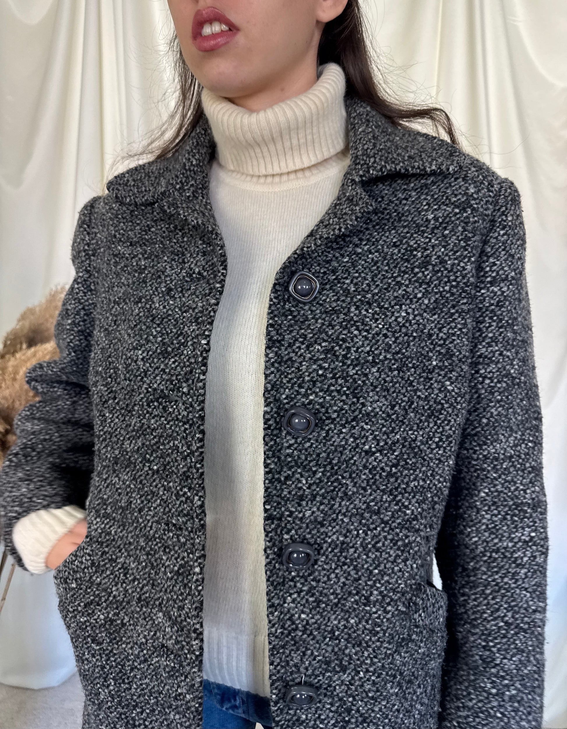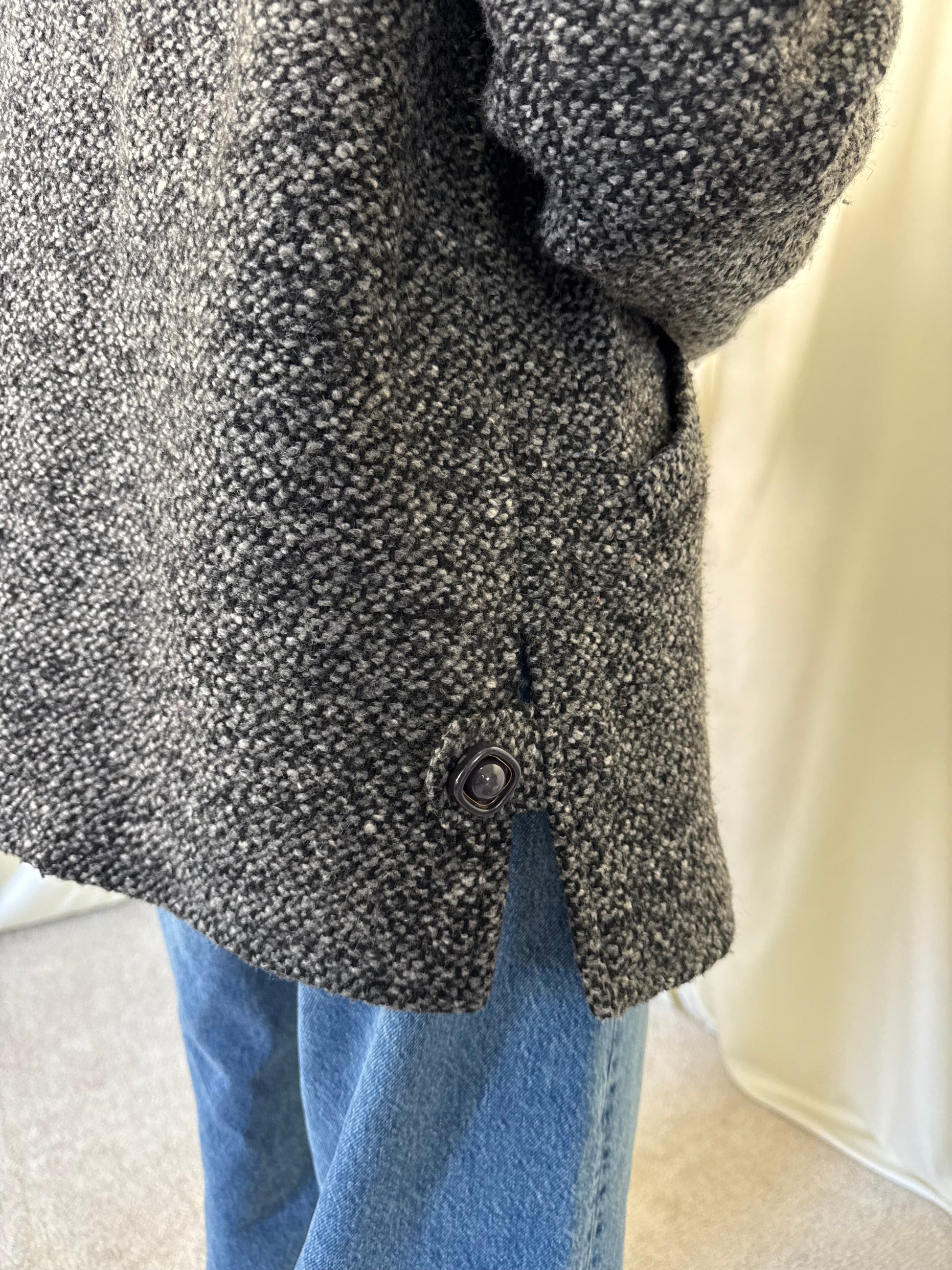 Jacheta vintage din stofa de lâna tip tweed Detaliu deosebit pe laterale