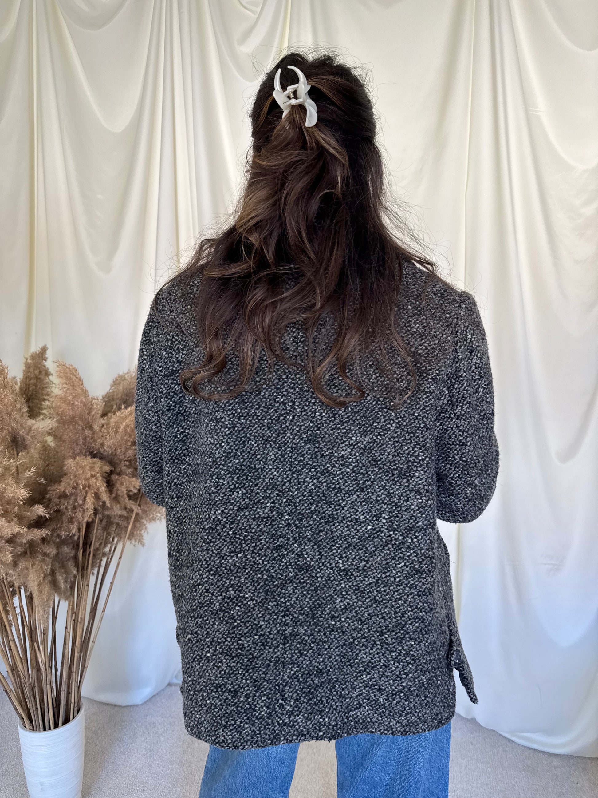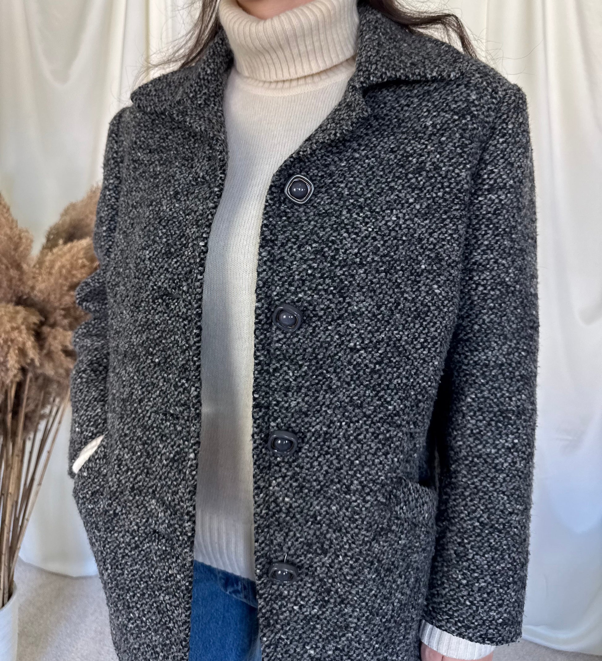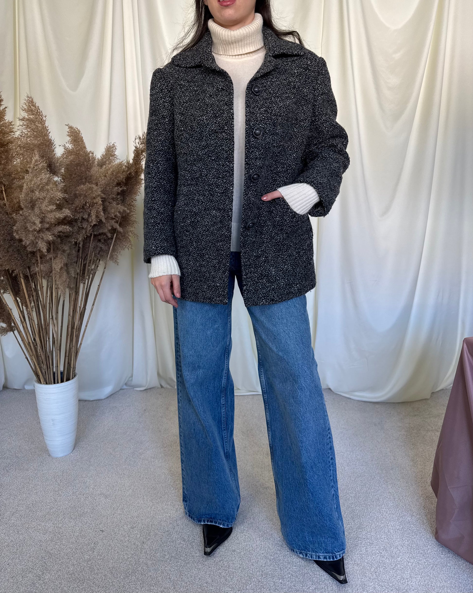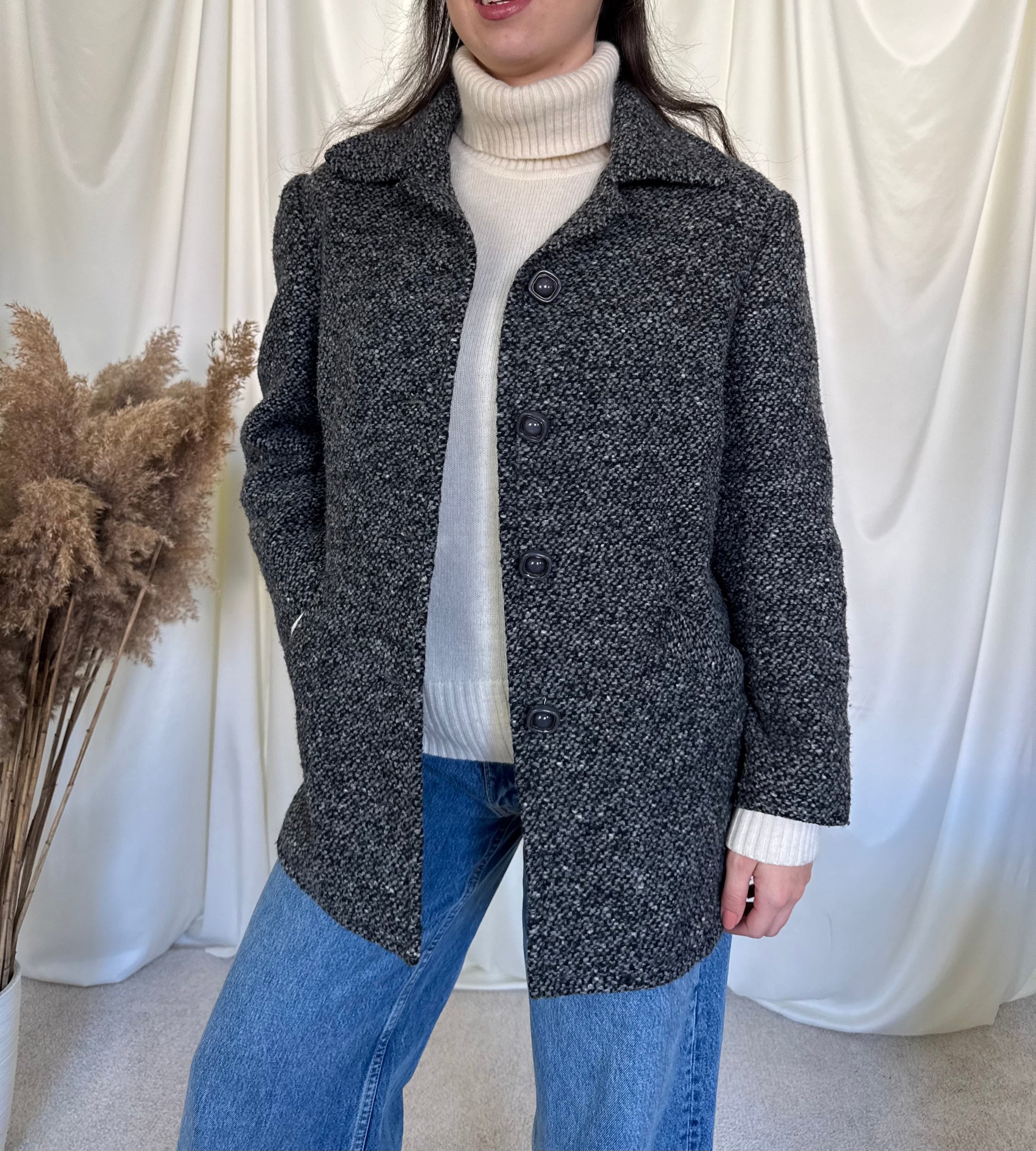 Jacheta vintage din stofa de lâna tip tweed Detaliu deosebit pe laterale