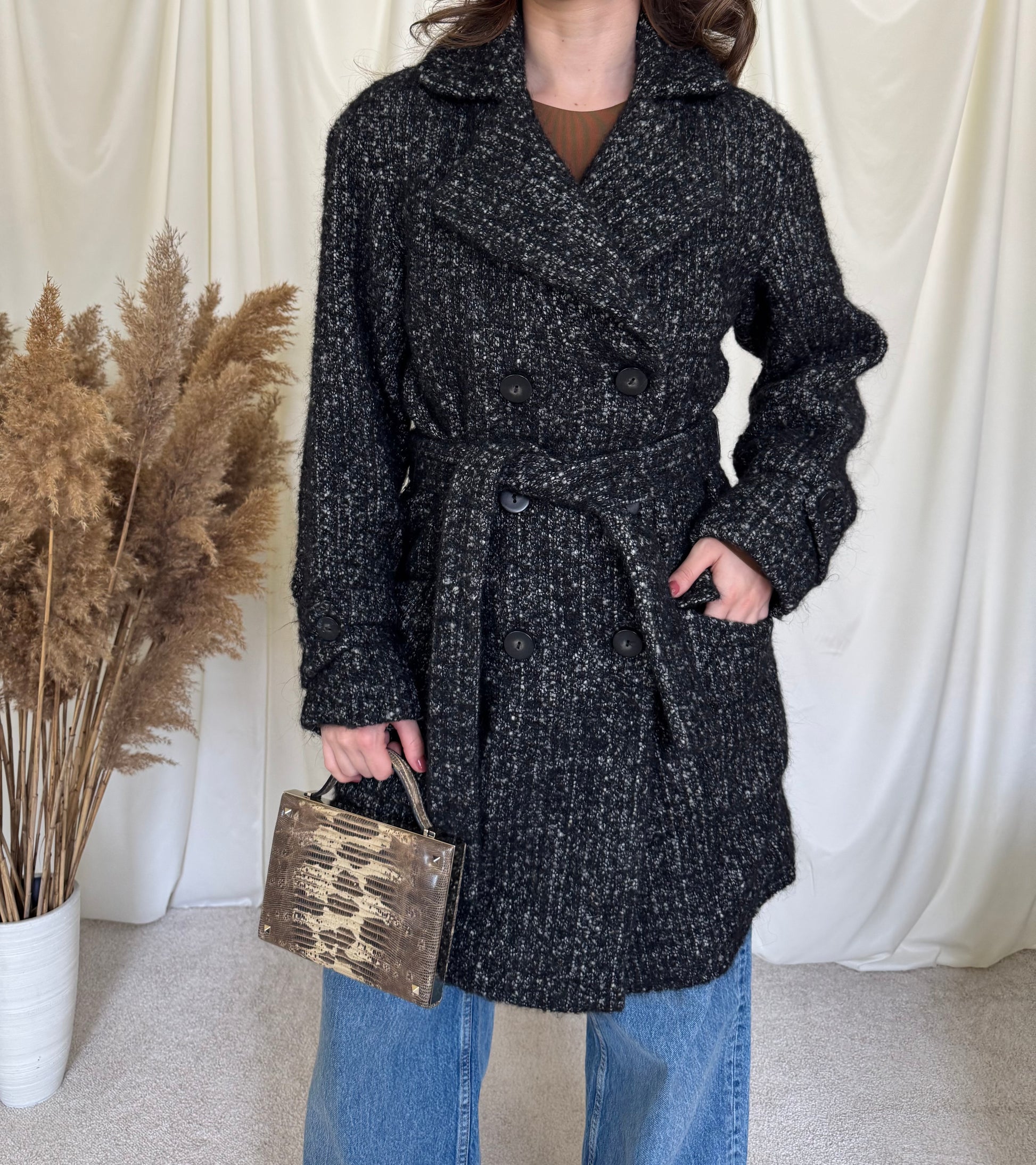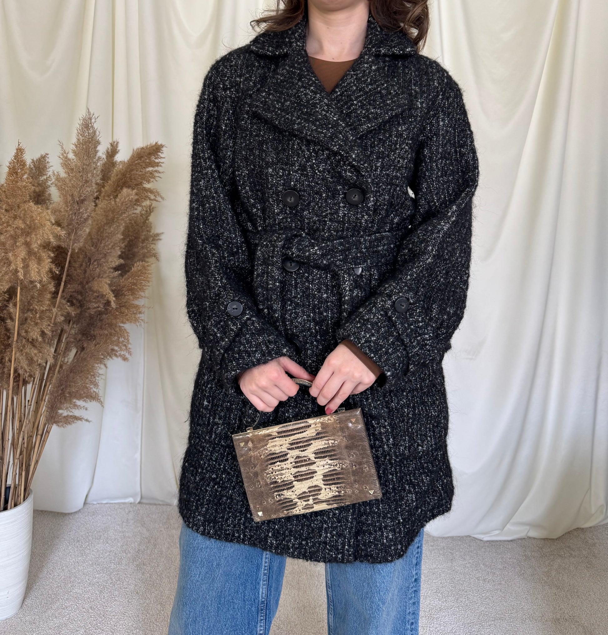 Palton cu cordon din 80% lână, alpaca și mohair ( M)