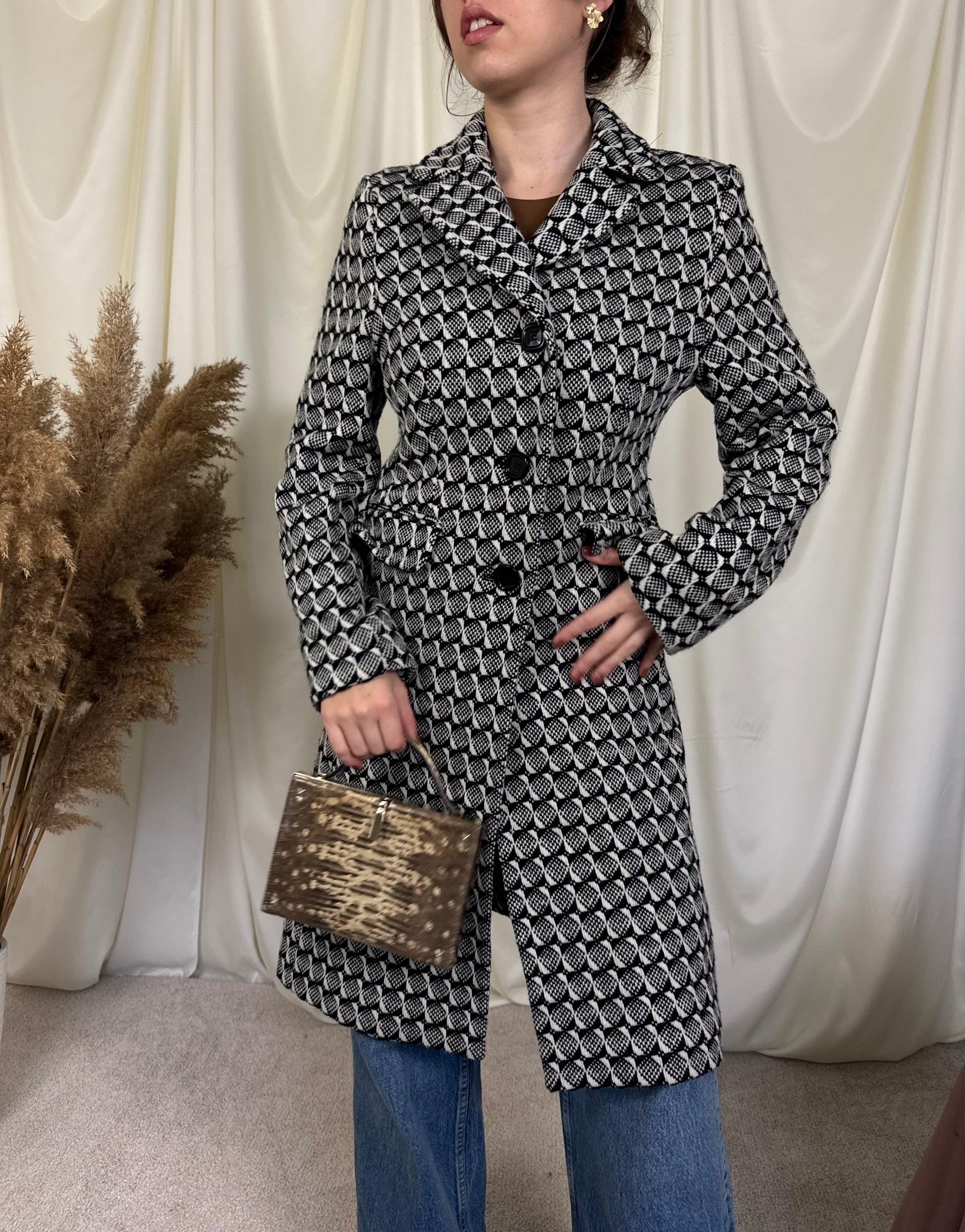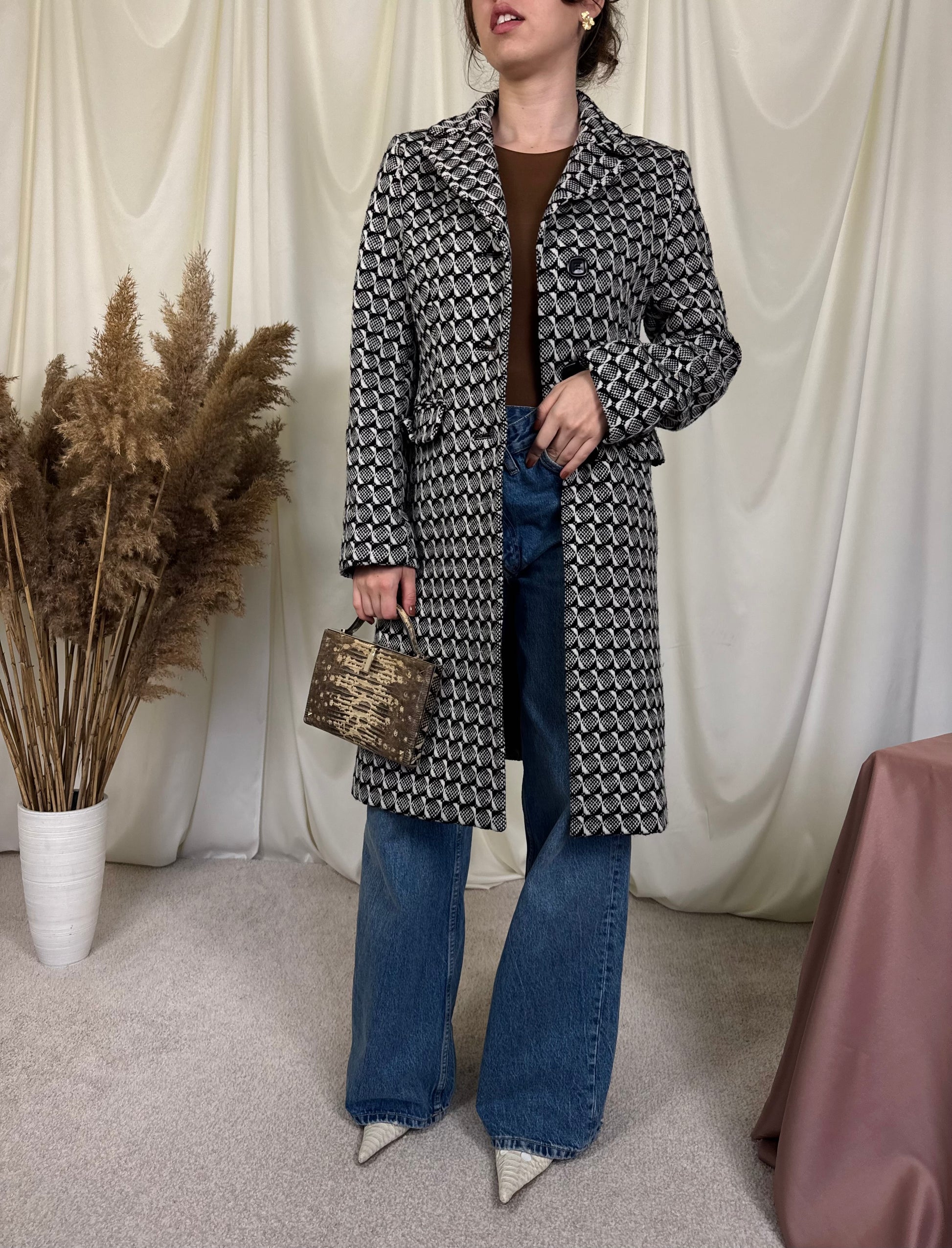 Palton superb din 50% lână cu print ( S)