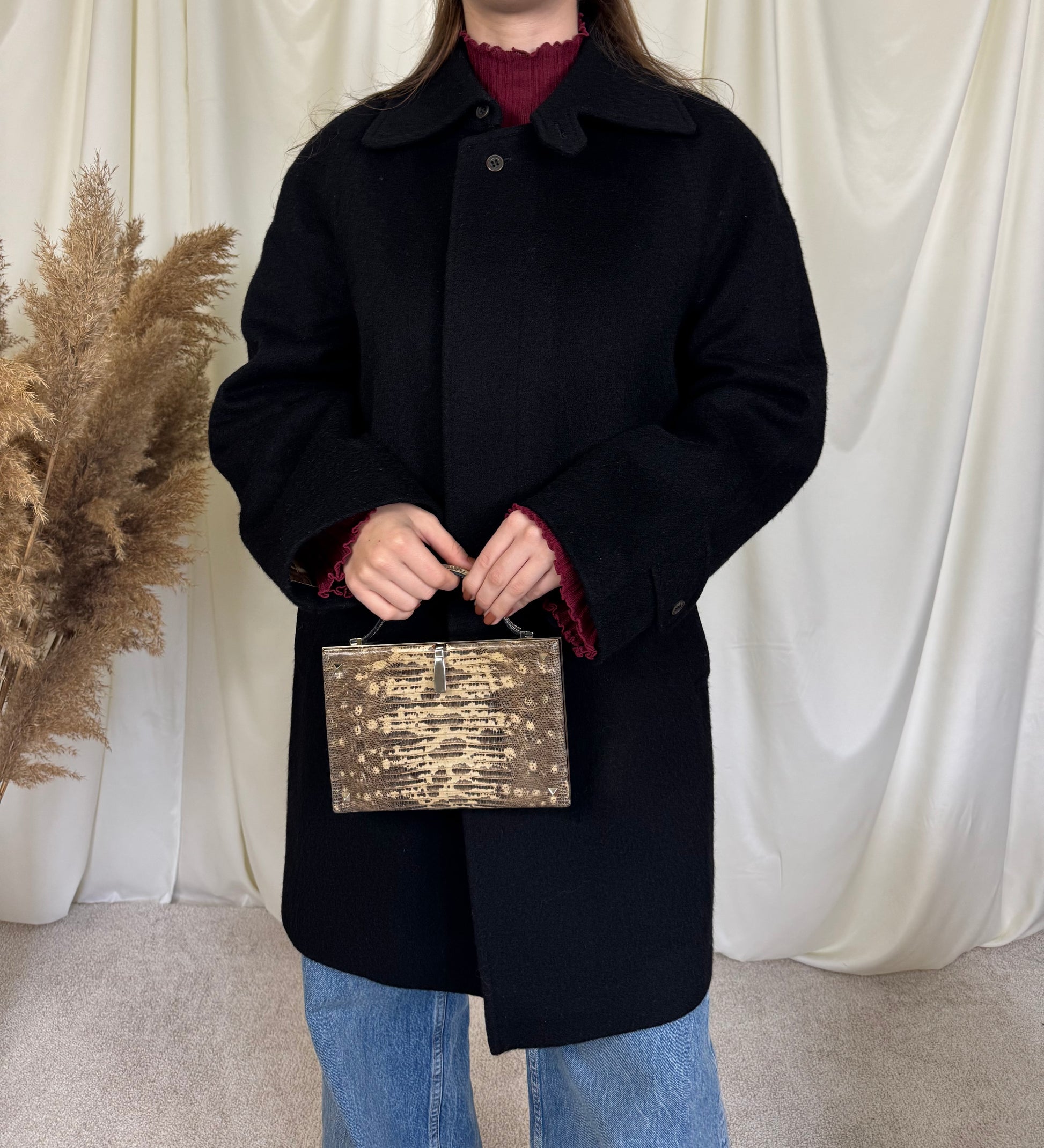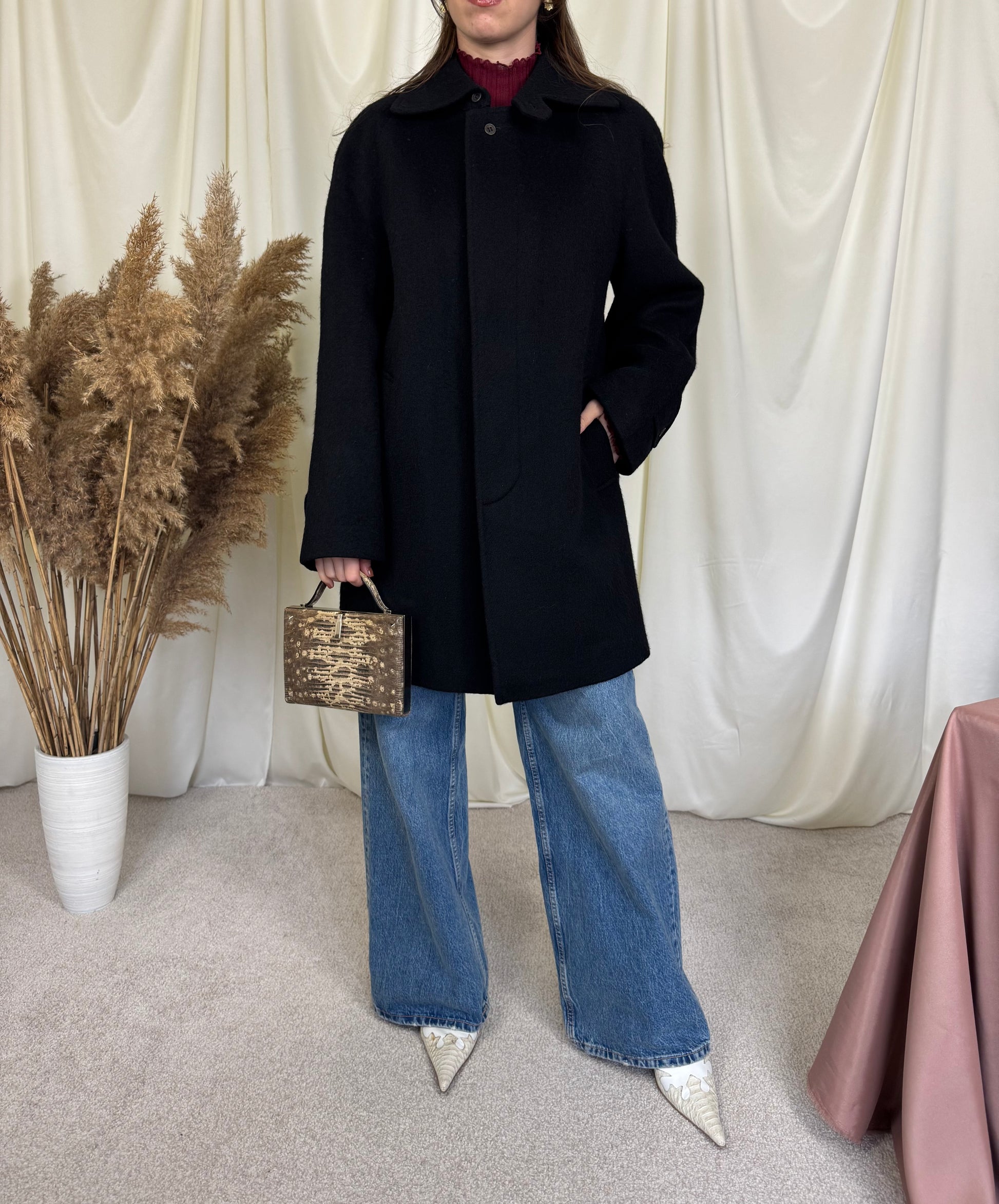 Palton vintage din stofă de lână, minimal, nasturi ascunși, mărimea 40/M-L
