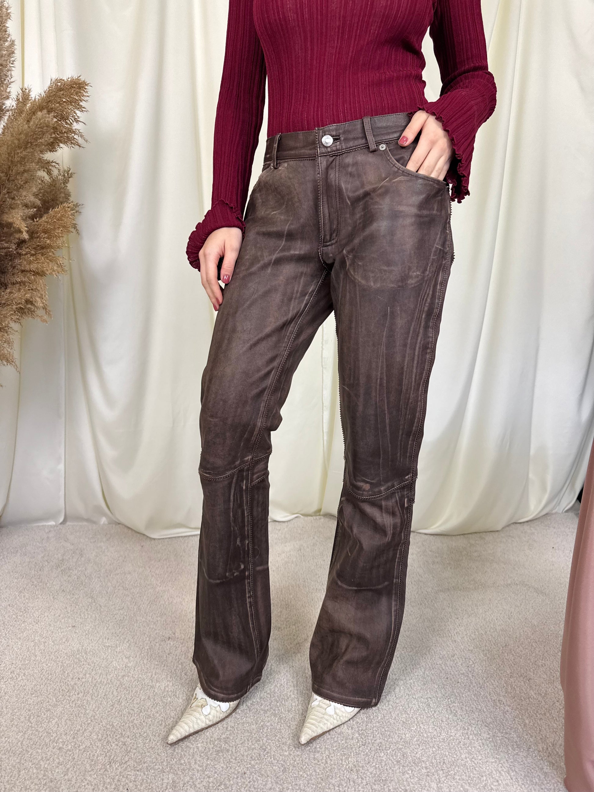 Pantalon mega cool din 100% piele naturala, mărimea M- talie medie/ joasa- 82 cm talie,105 cm lungime- potrivit și S/M