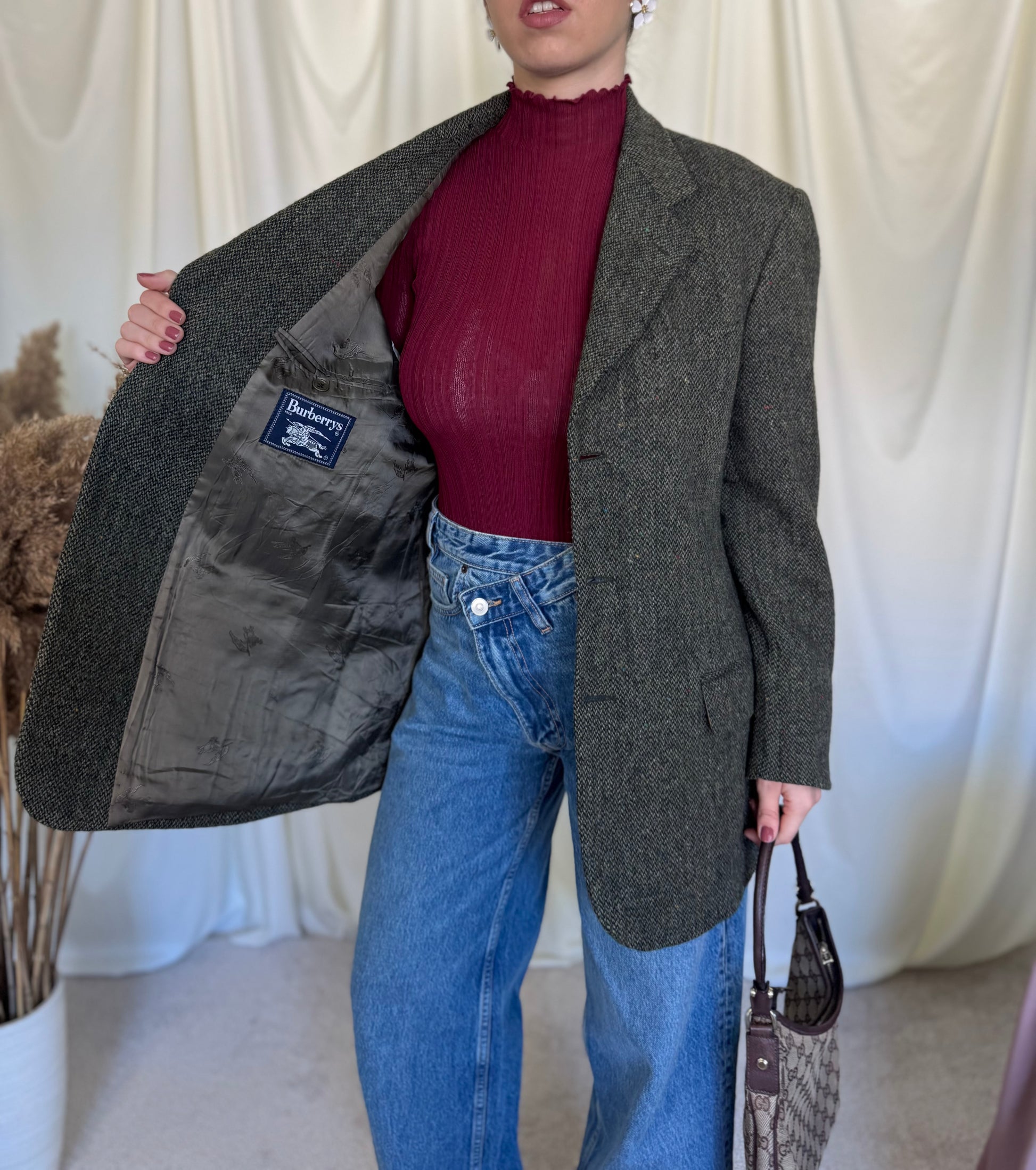 O piesă vintage luxury rară- Sacou brand premium @burberry , lână luxury groasă @harristweedauthority , nasturi și căptușeală inscripționate.