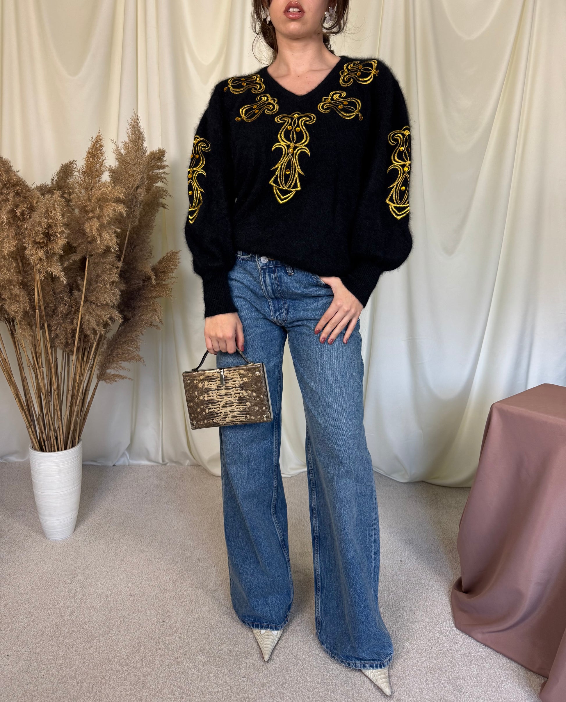 Pulover vintage superbisim brodat din angora și lână, mărimea M, Pret: 240 lei