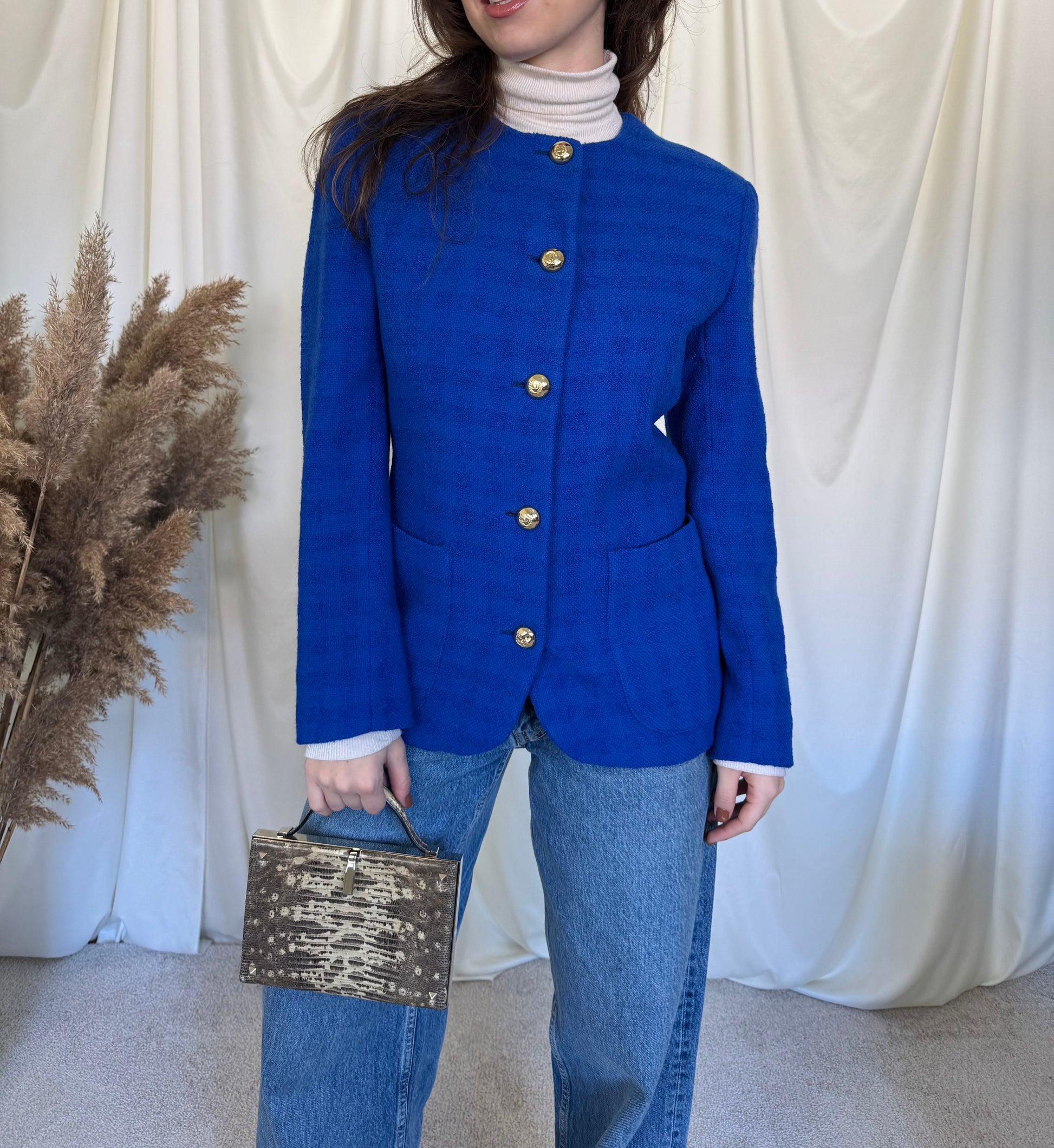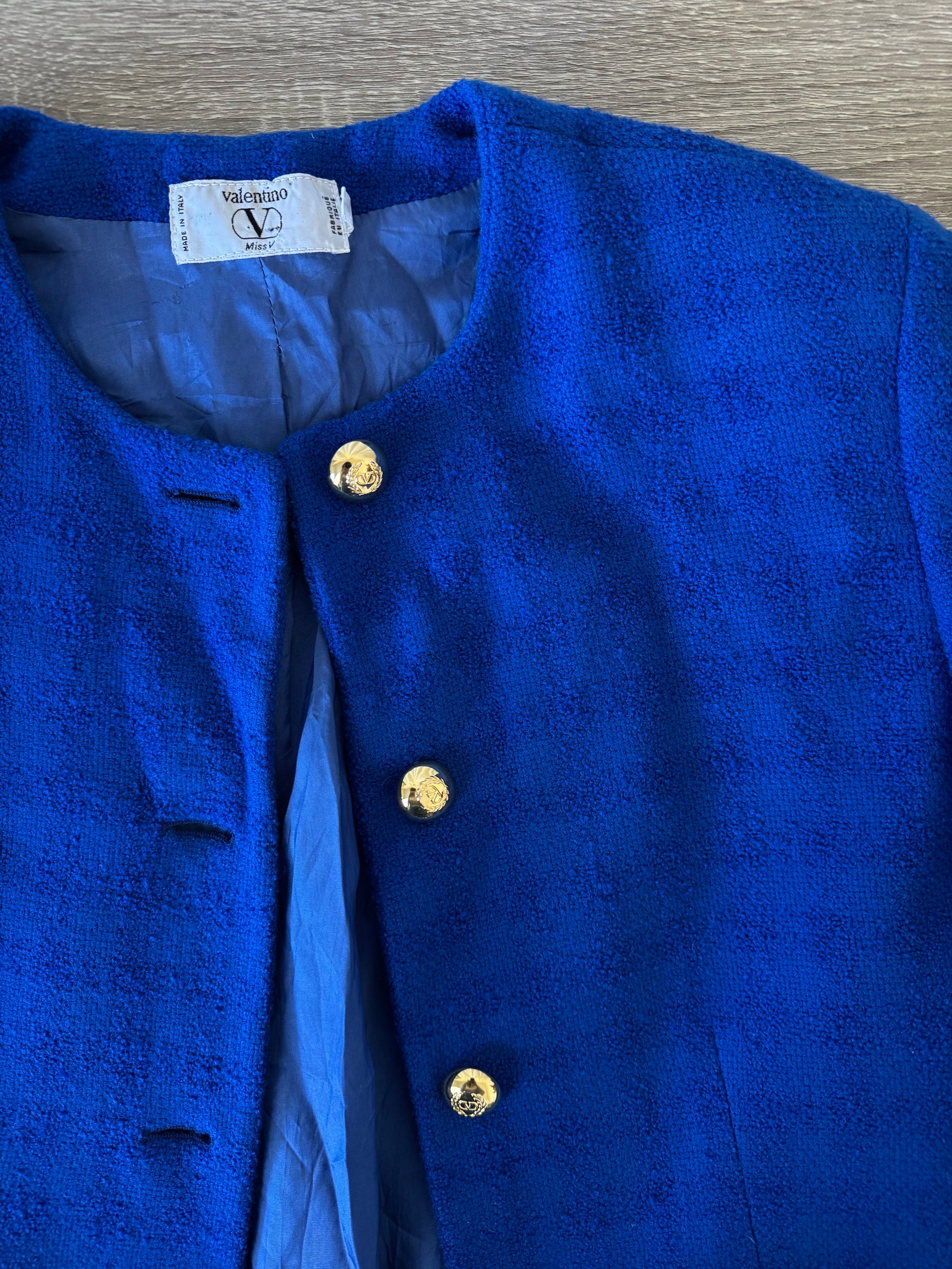Piesa vintage Maison Valentino de colecție, stofă din lână super moale, nasturi metalici aurii inscripționați