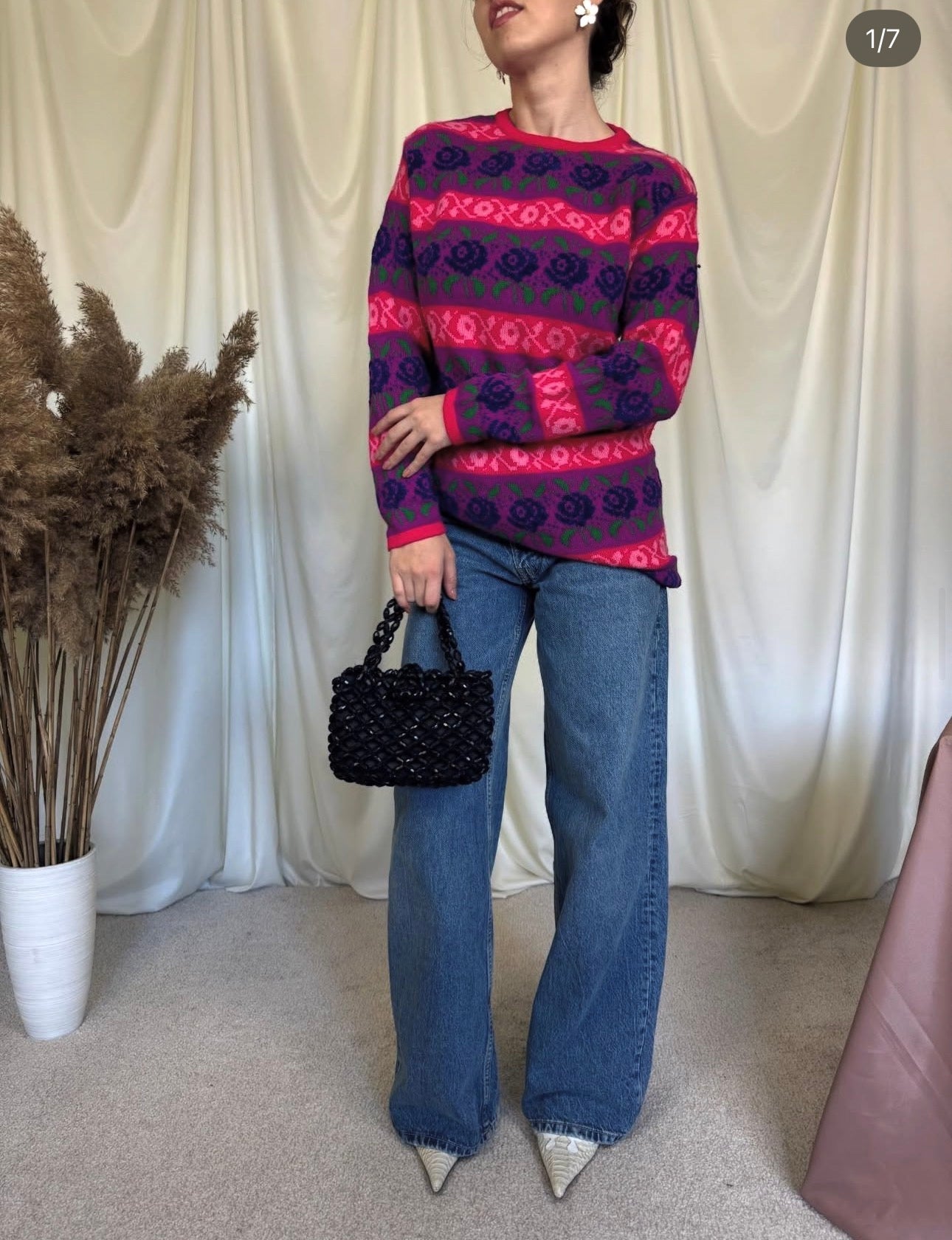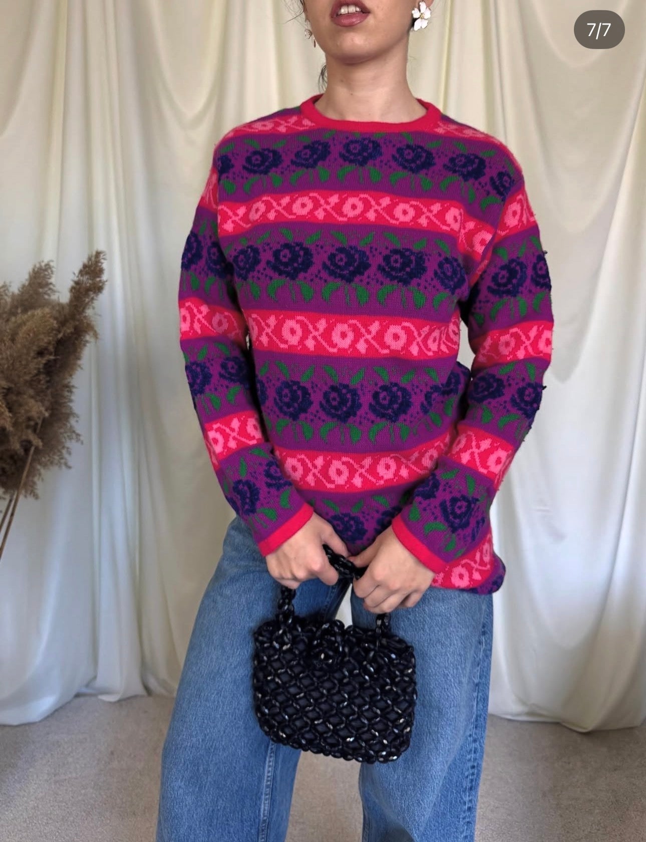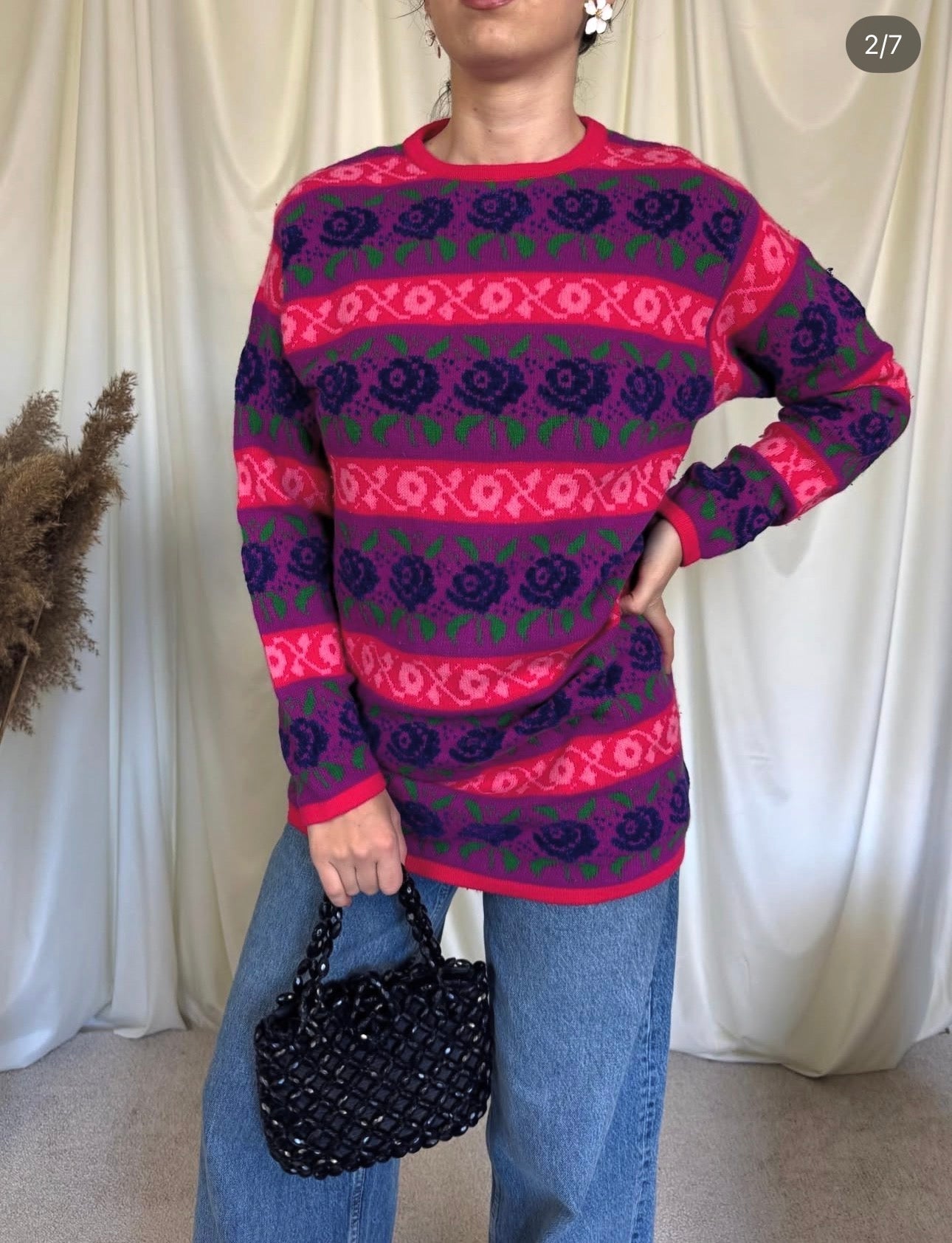 Pulover multicolor dintr-un material super moale și dens, mărimea S-M
