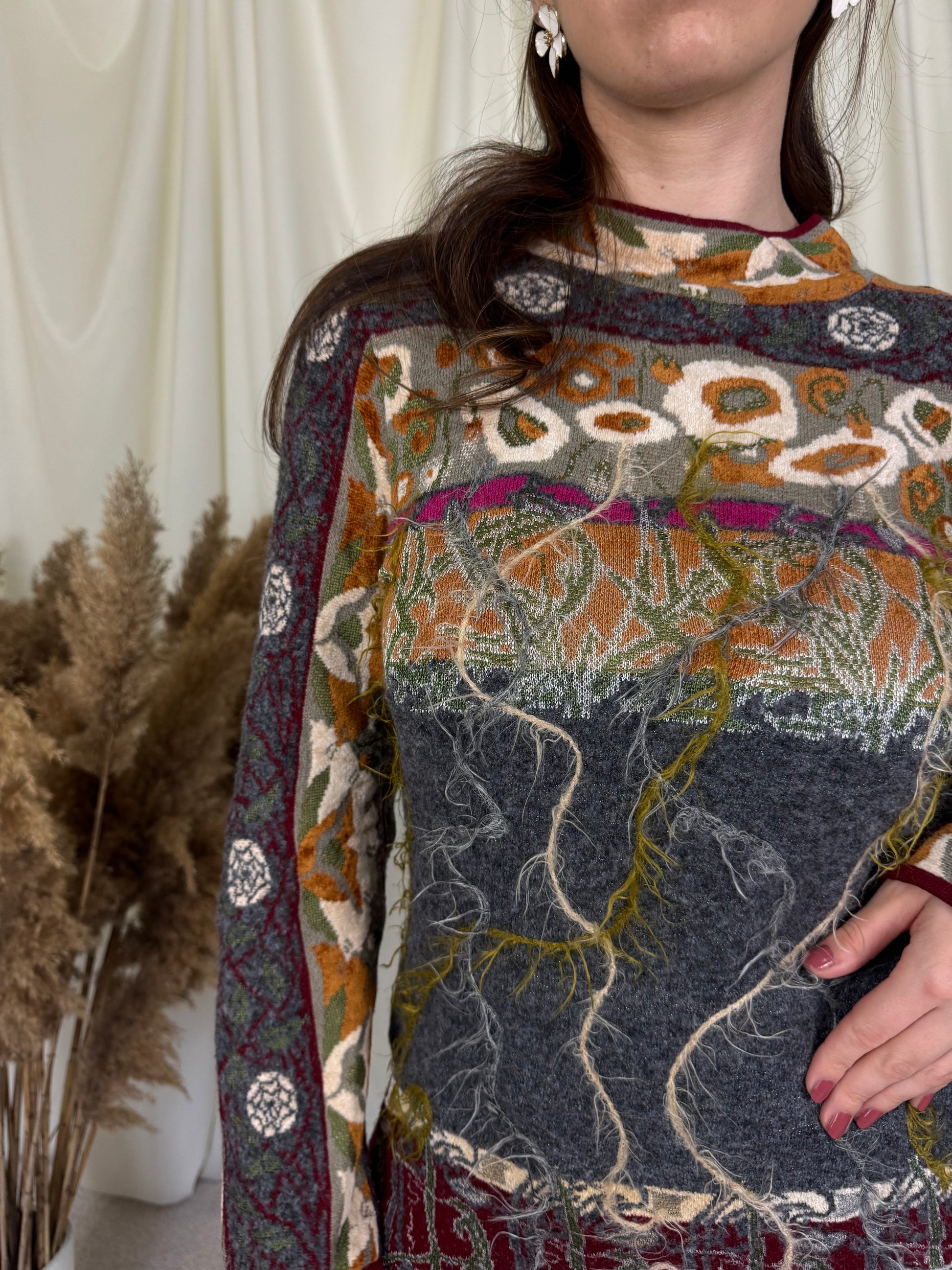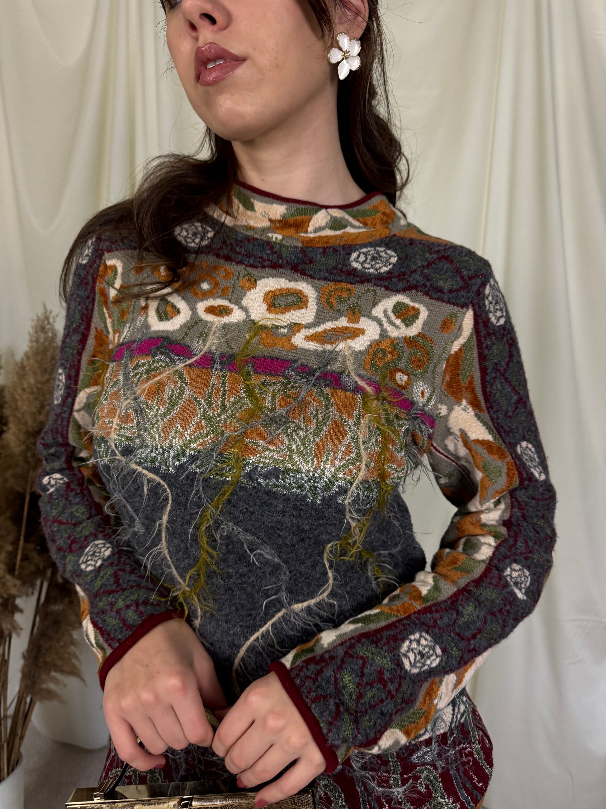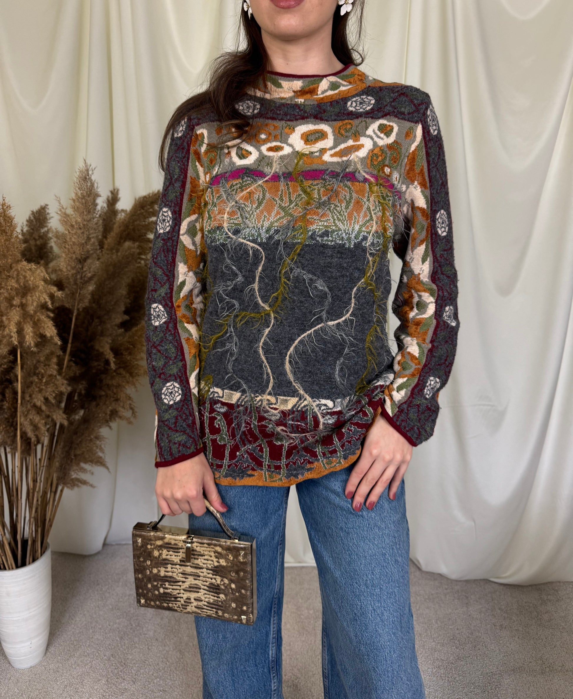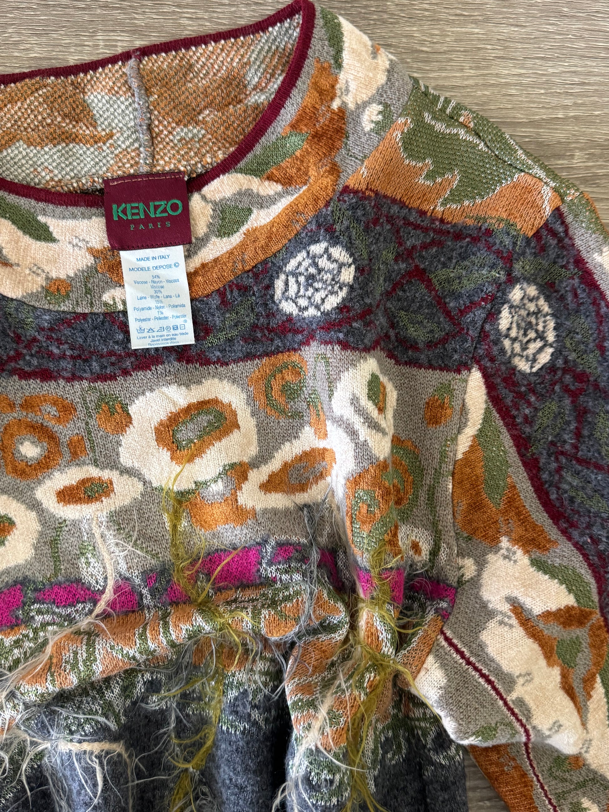 Pulover vintage @kenzo cu print și detalii din catifea, mărimea S/M, Pret: 210 lei