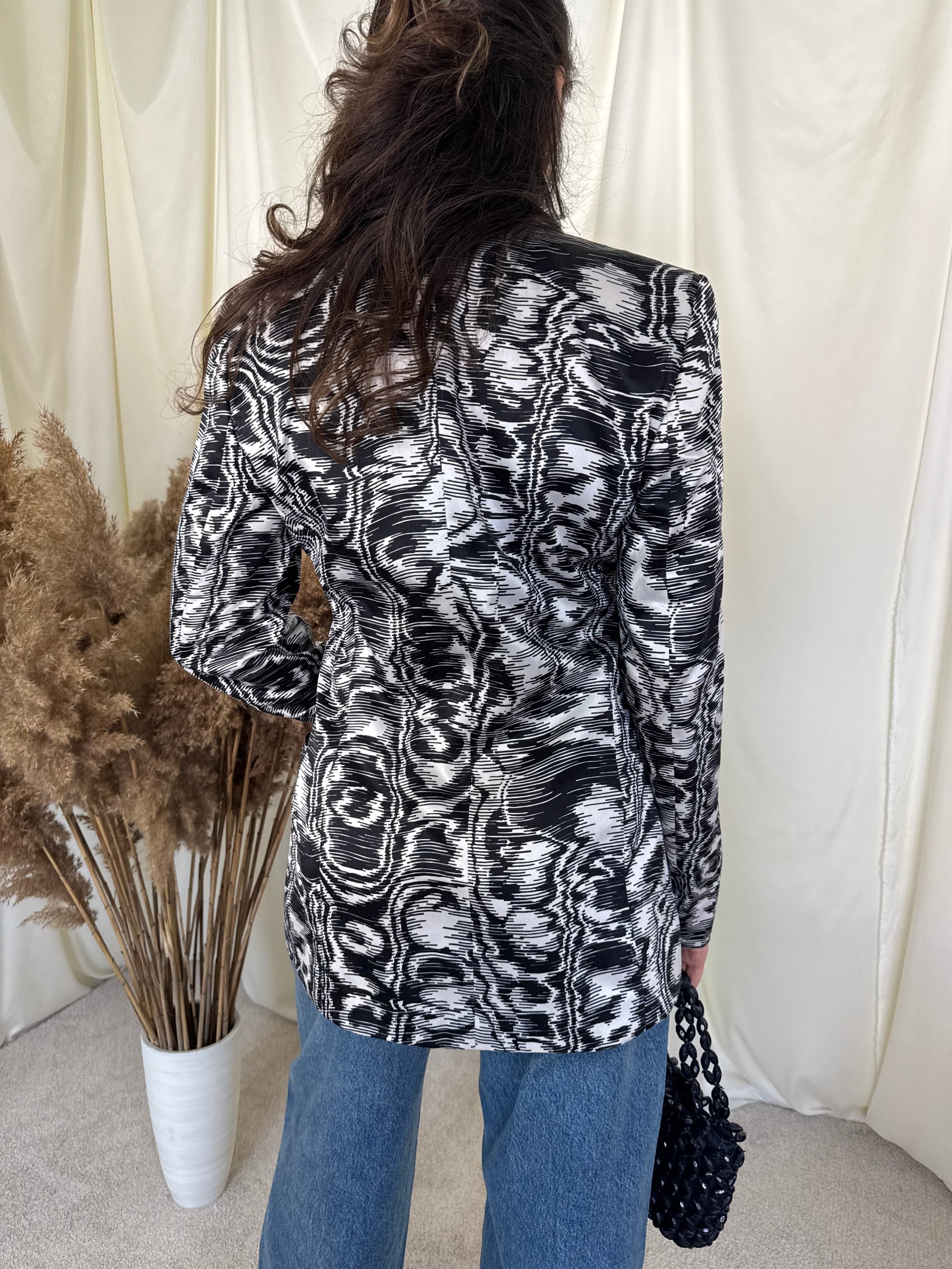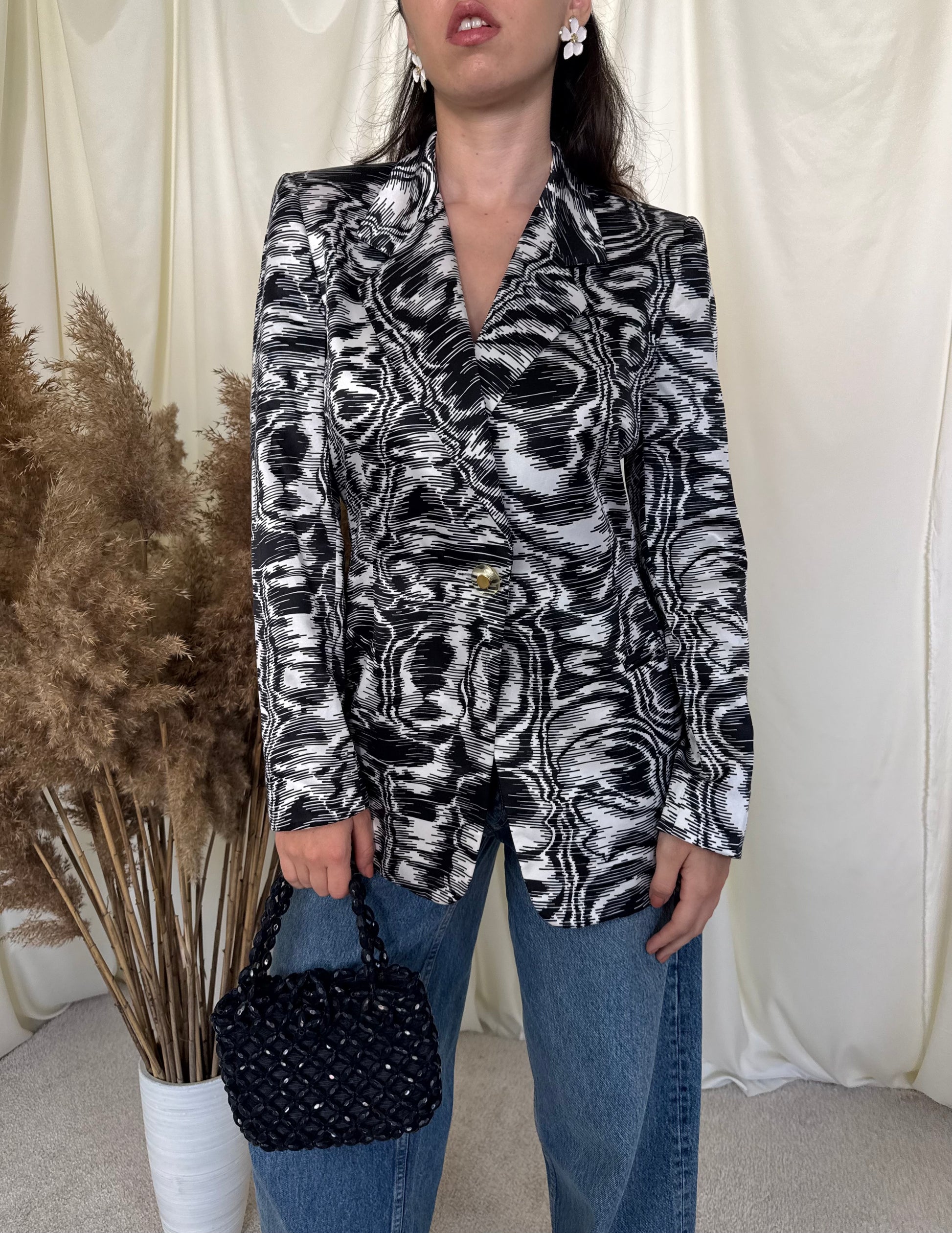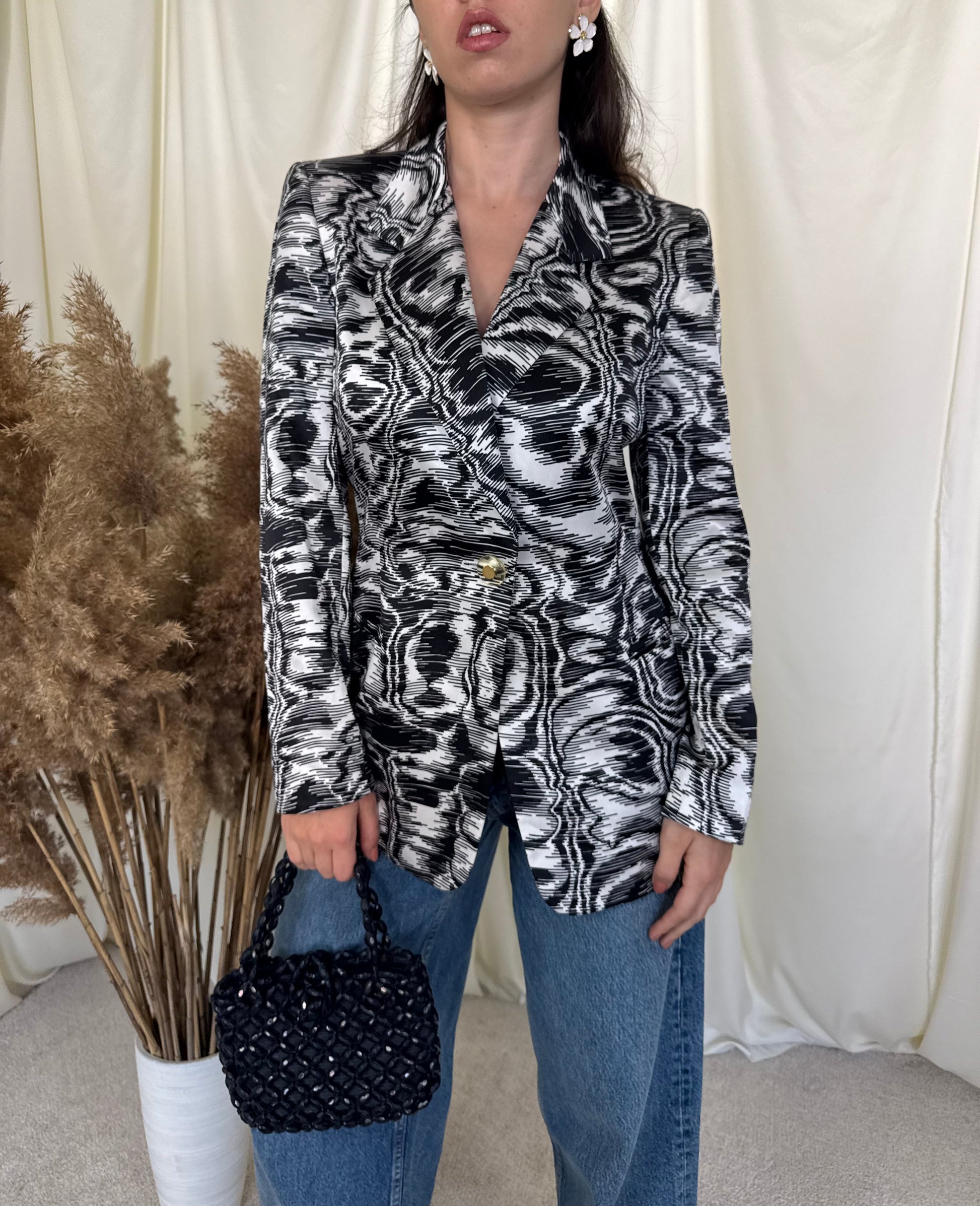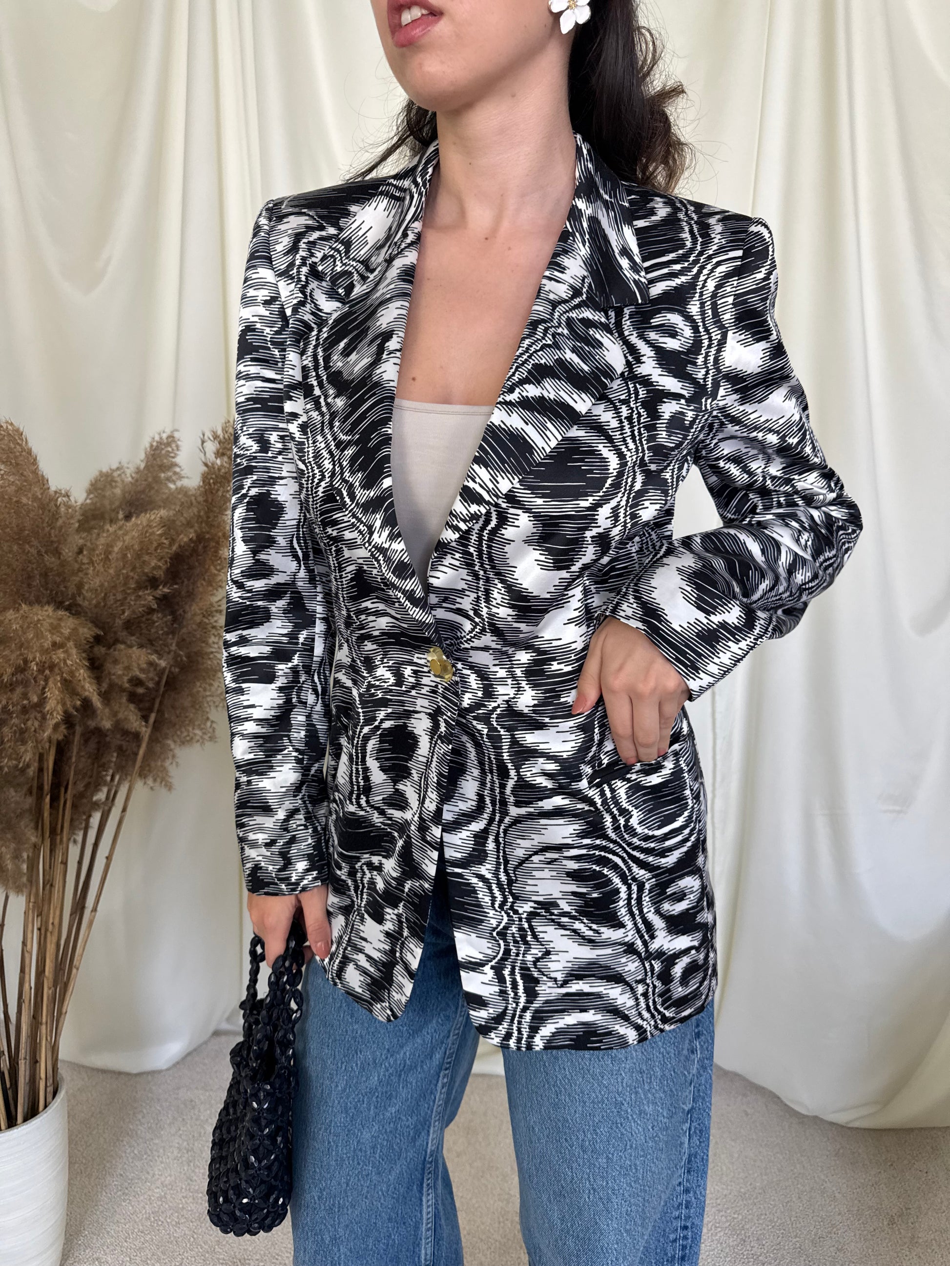 Sacou premium din 50% mătase naturala și 50% bumbac, mărimea S-M, umeri marcați, talie puțin cambrata, o piesă ce scoate orice ținută din anonimat