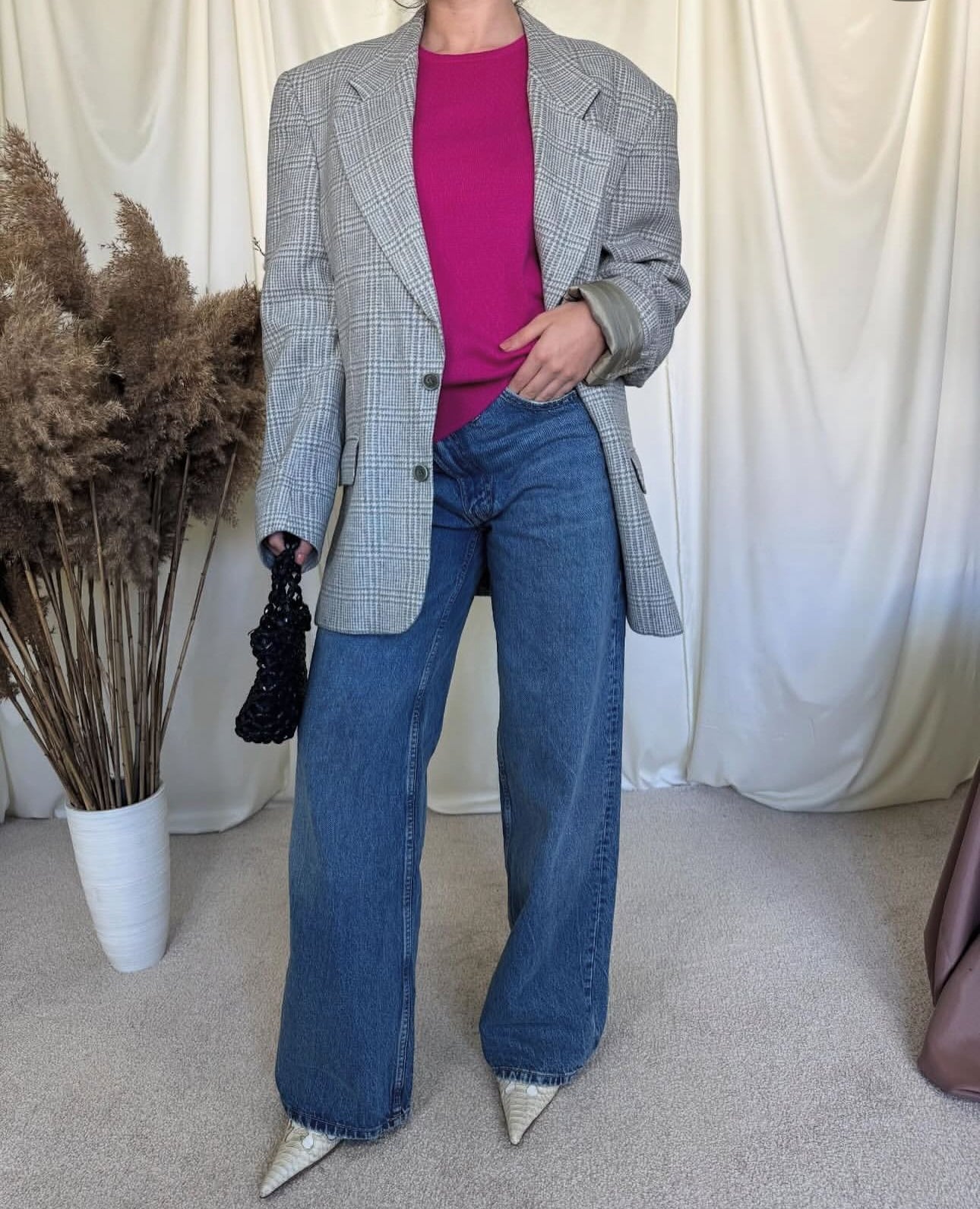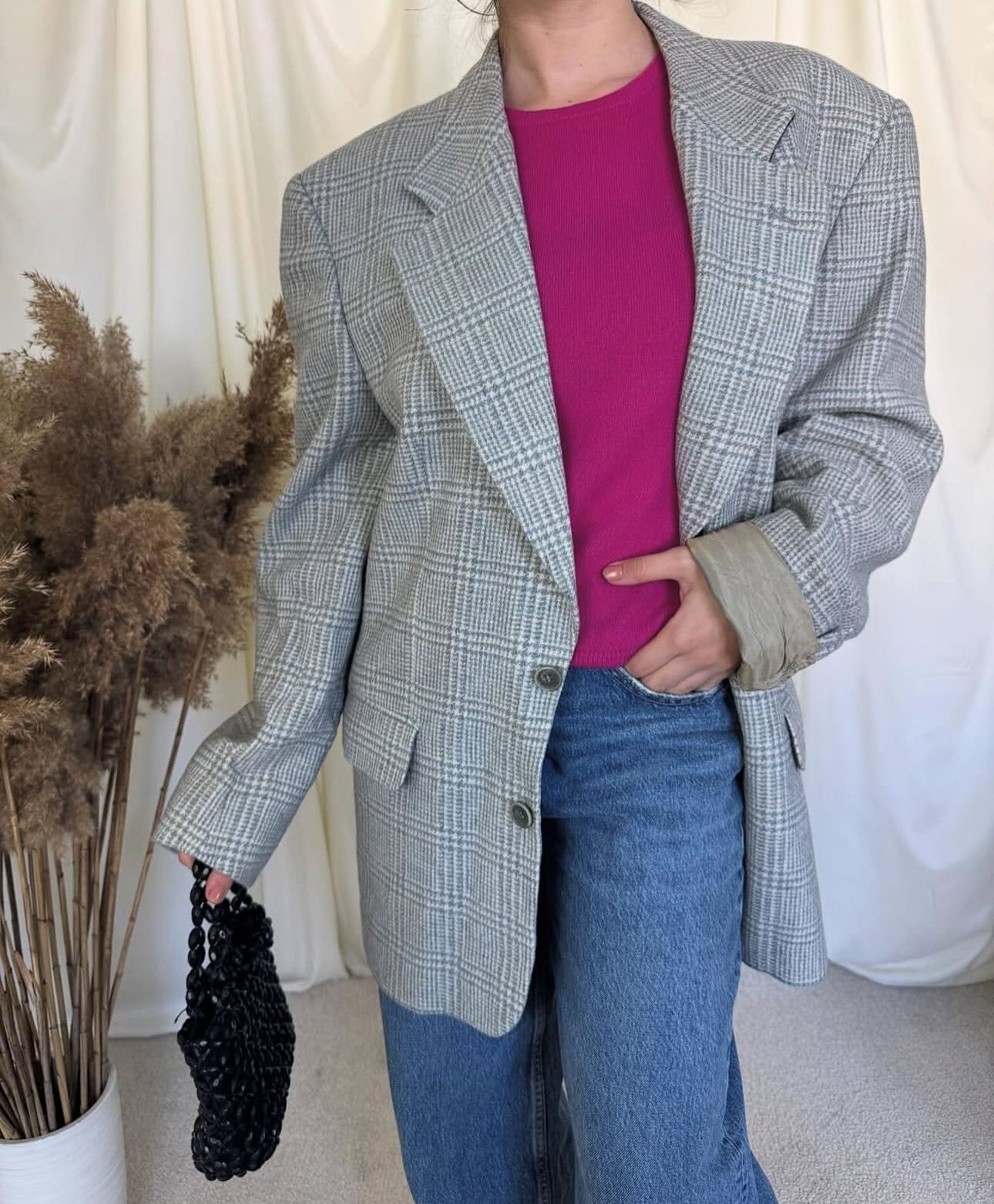 Sacou vintage din lână print superb( mărimea L)
