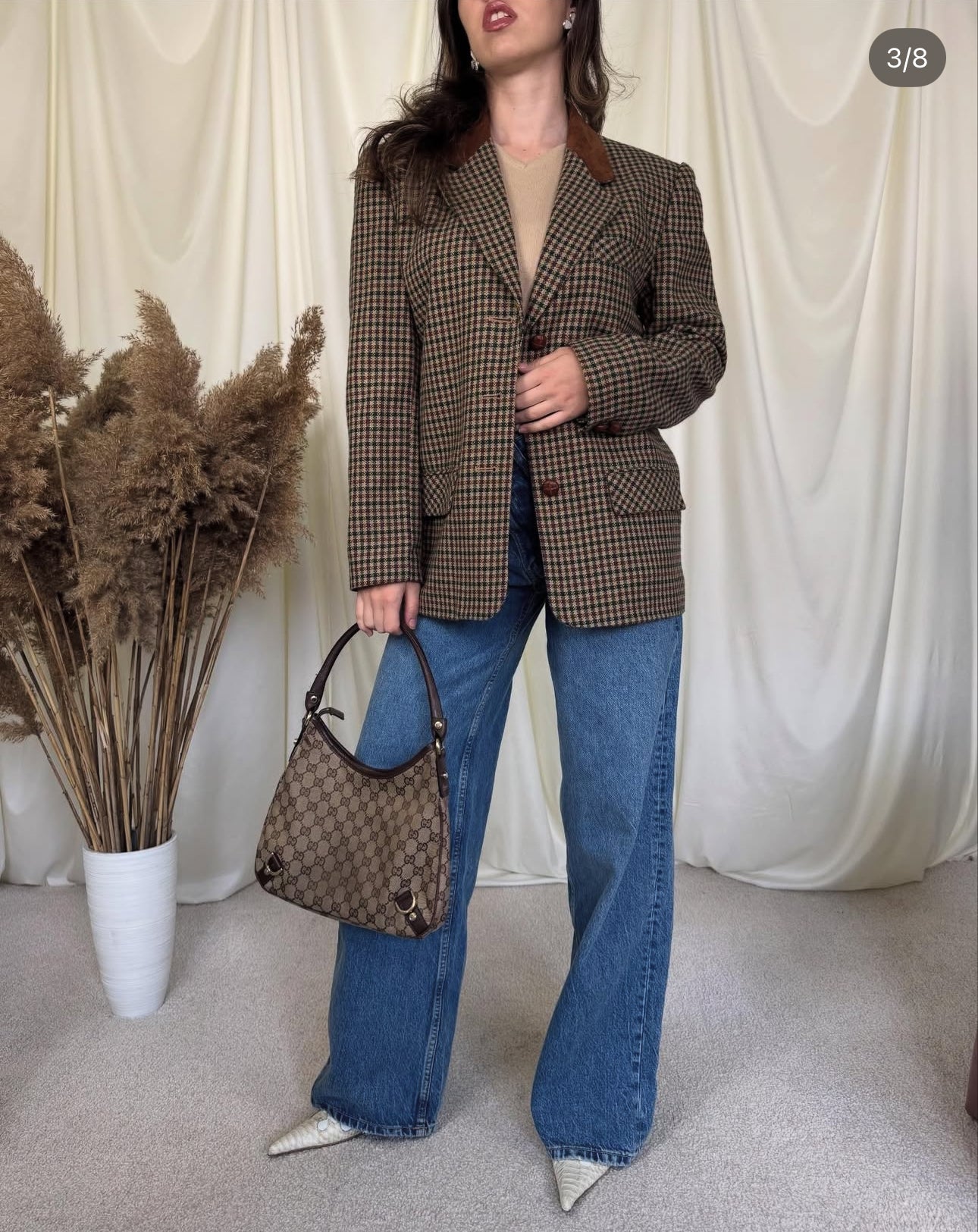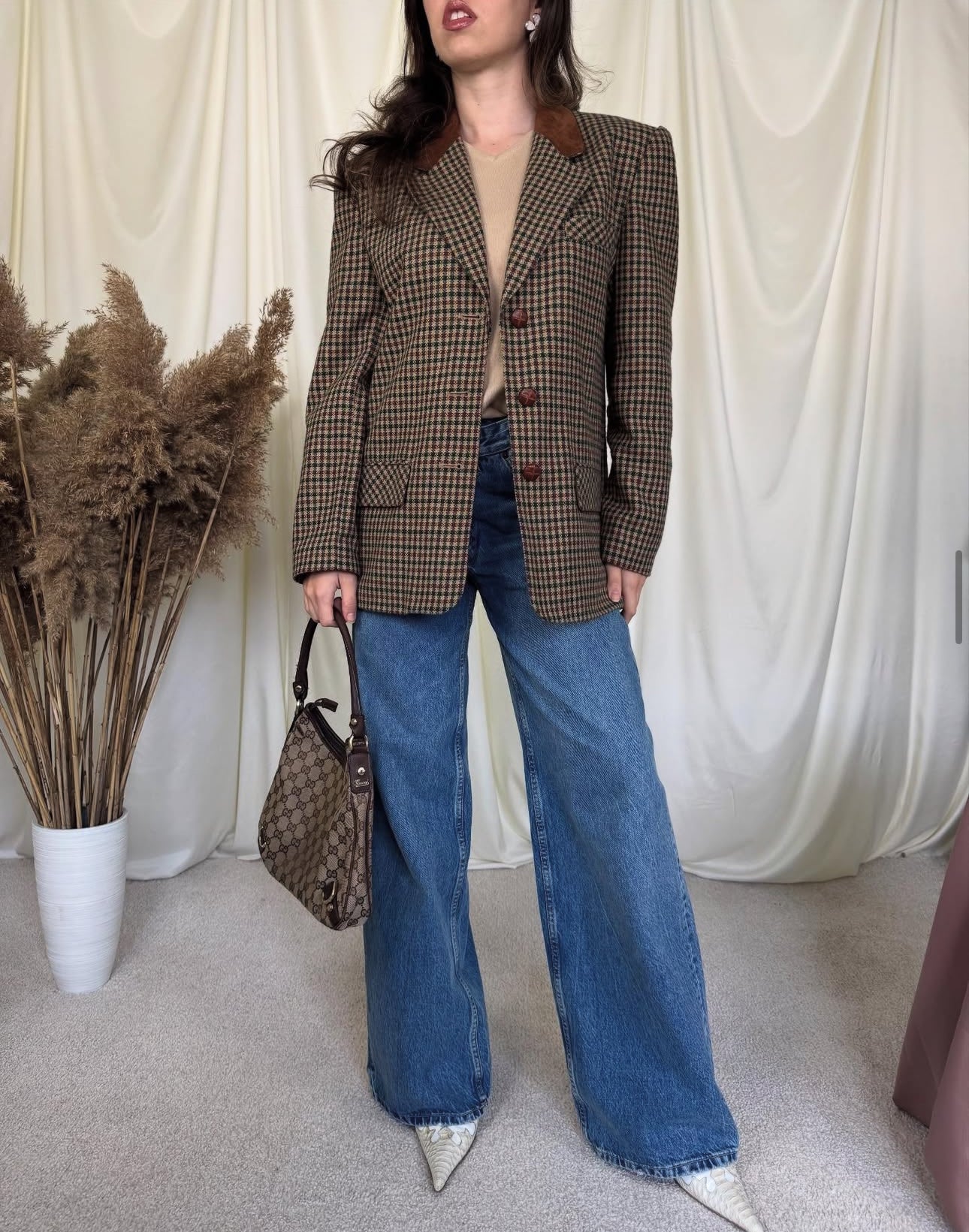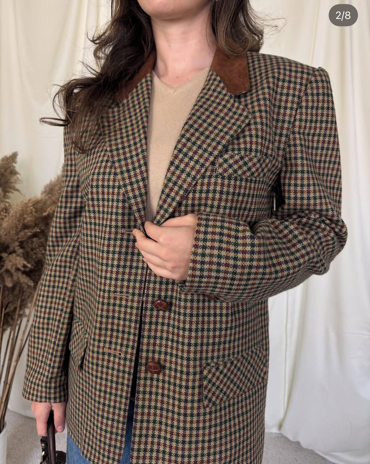 Sacou vintage din stofă de lână, umeri marcați, mărimea S/M, fit puțin oversized