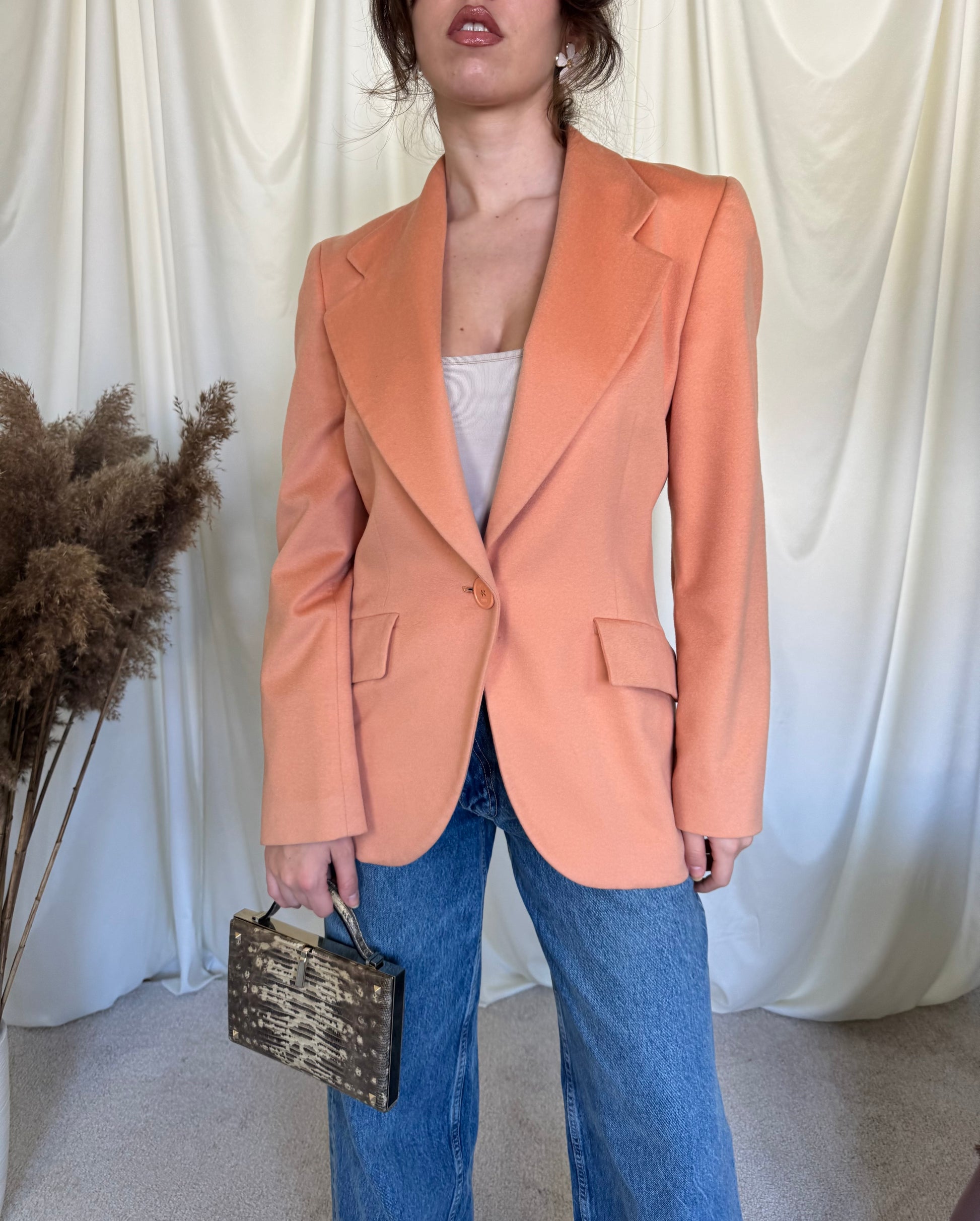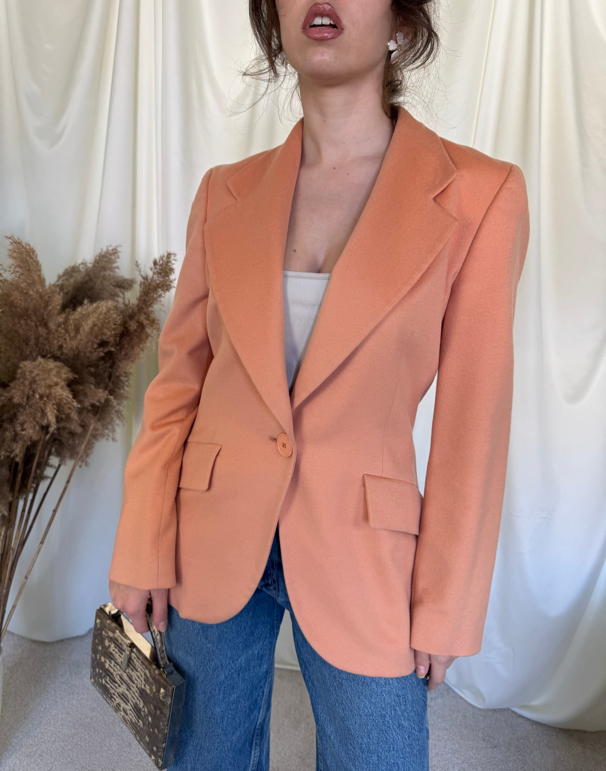 Piesa vintage premium de brand dintr-o stofă excepțională: lână și cașmir, nuanța superbă piersică.