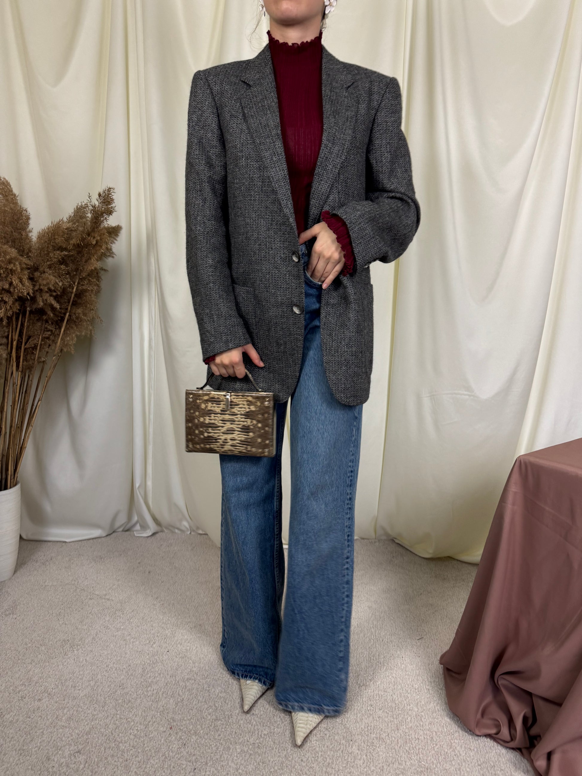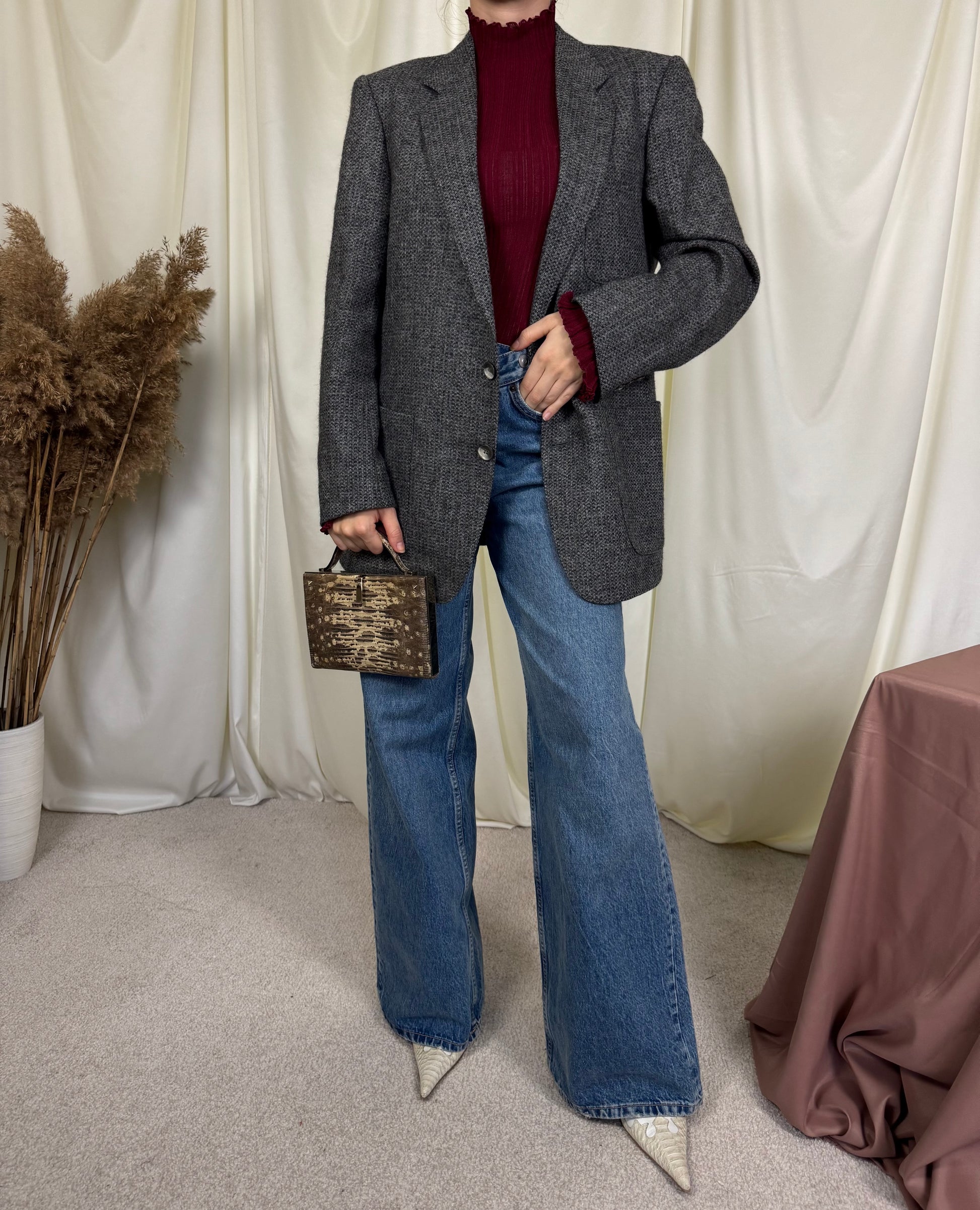 Sacou vintage superb din stofă groasă 100% lână, cu structură. Mărimea M
