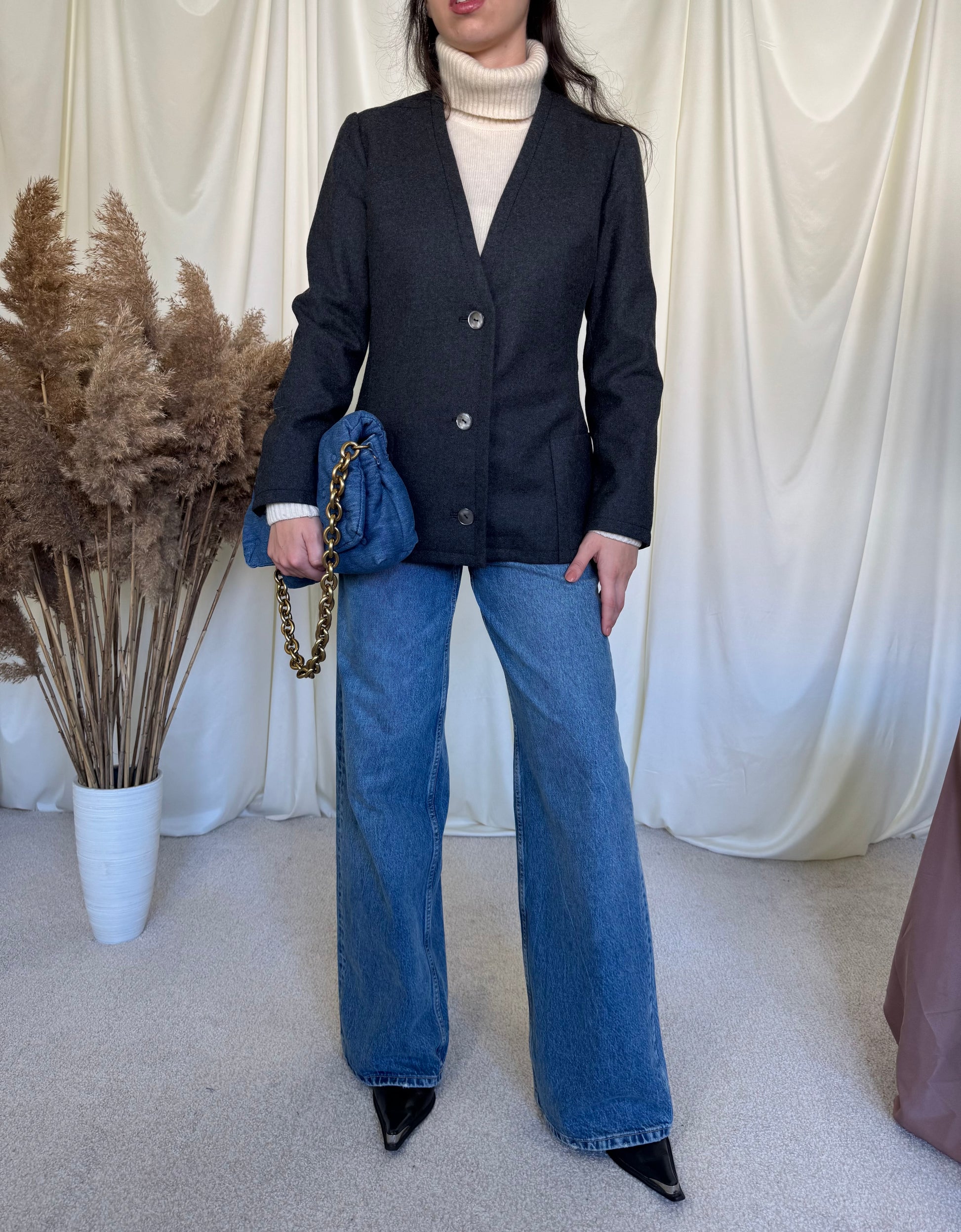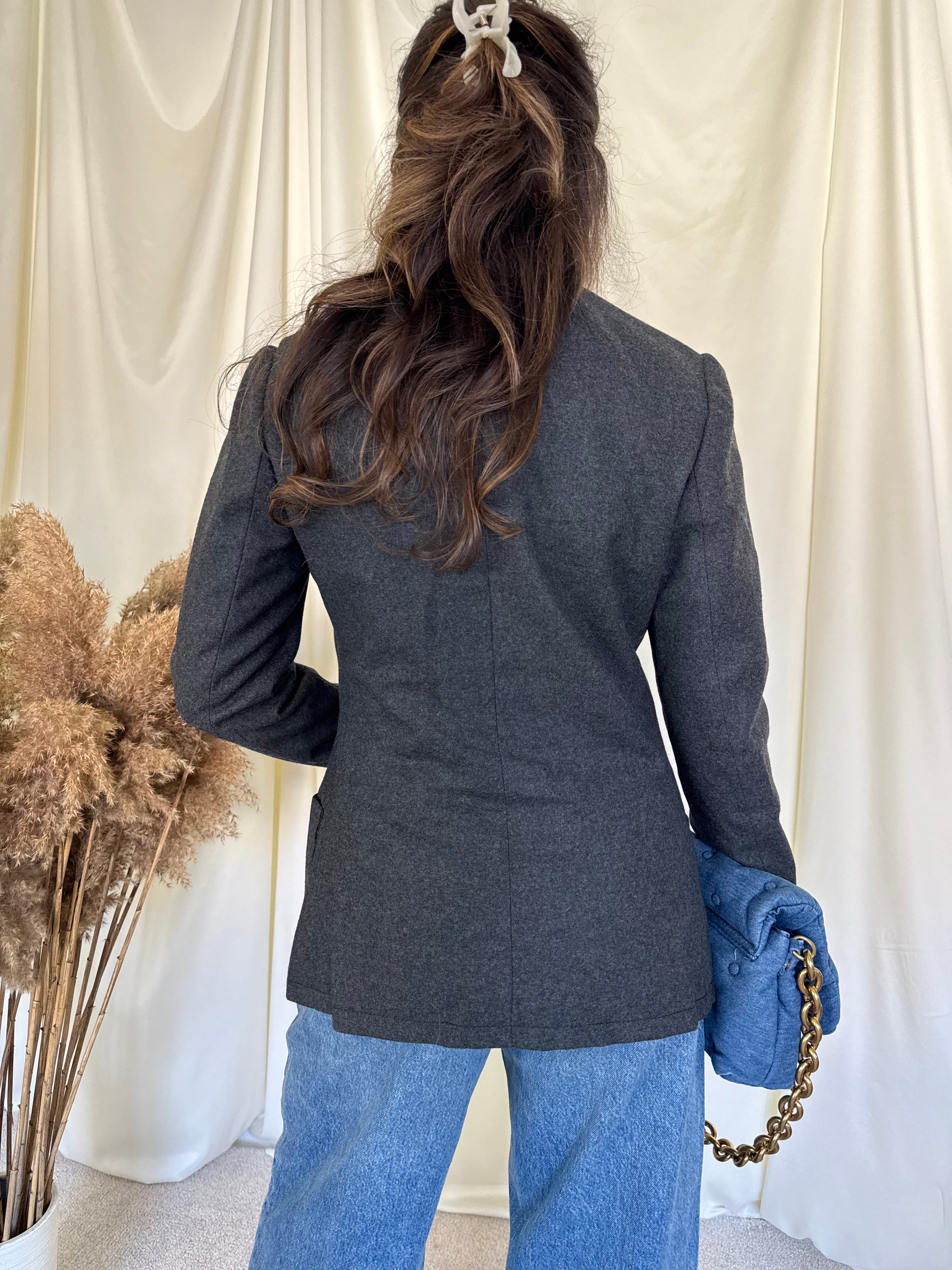 Sacou vintage tip jacheta din stofa de lâna 100%, material gros cu structură