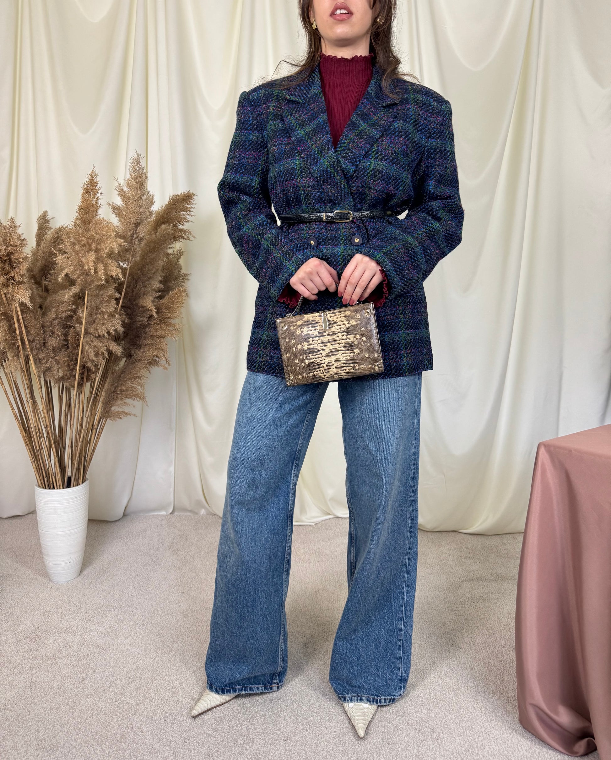 Sacou vintage din Tweed superb - 95% Lana, sacou- tip jacheta cu nasturi deosebiți- la rând dublu, mărimea L/XL